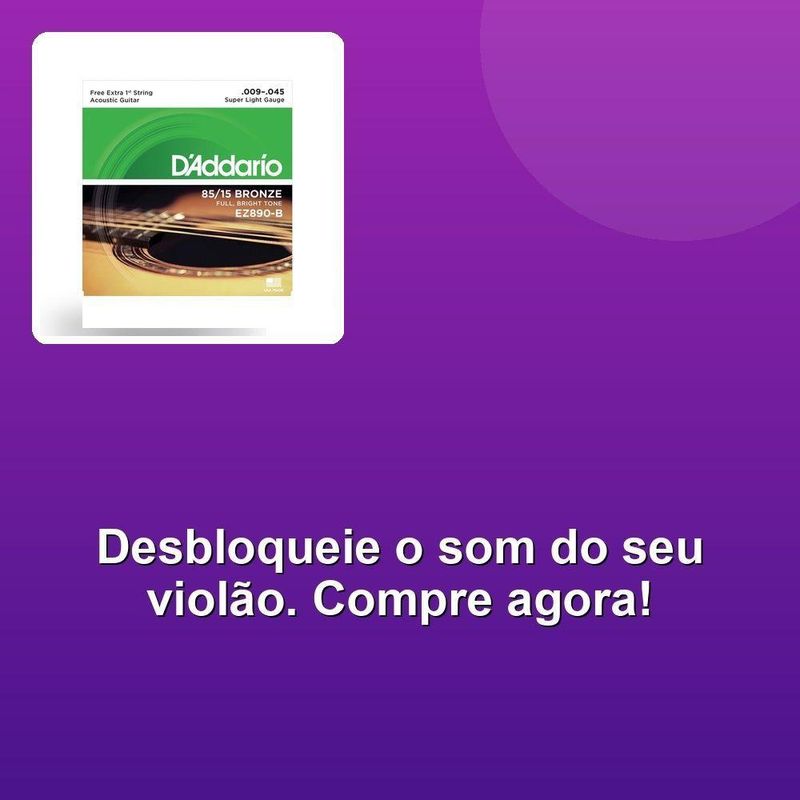 Encordoamento Aço Violão Ez890-b6 .009-.045Desbloqueie o som do seu violão com o Encordoamento De Aço Para Violão Ez890-b 6 Cordas Super Light .009-.045 - Corda Mi Extra. Este produto oferece uma combinação perfeita de brilho e sustain, graças às cordas 85/15 Great American Bronze. Esta tecnologia inovadora combina o brilho das 80/20 Bronze com as características de durabilidade das Phosphor Bronze, resultando em um som rico e detalhado.As cordas individuais apresentam medidas específicas para garantir o melhor desempenho possível. A corda PL009 tem 0,09 polegadas (0,23 mm), a PL012 tem 0,12 polegadas (0,30 mm), a PL015 tem 0,15 polegadas (0,38 mm), a ZW025 tem 0,25 polegadas (0,64 mm), a ZW035 tem 0,35 polegadas (0,89 mm) e a ZW045 tem 0,45 polegadas (1,14 mm). Isso significa que você pode contar com um som equilibrado e preciso em todas as frequencies.Com esse encordoamento, você pode desbloquear o seu som e expressar sua criatividade. Além disso, as cordas Great American Bronze são conhecidas por sua durabilidade, o que significa que você pode tocar sem se preocupar com a troca frequente de cordas. Experimente o Encordoamento De Aço Para Violão Ez890-b 6 Cordas Super Light .009-.045 - Corda Mi Extra hoje e descubra um novo nível de sonoridade.Desbloqueie o som do seu violão com o Encordoamento De Aço Para Violão Ez890-b 6 Cordas Super Light .009-.045 - Corda Mi Extra. Este produto oferece uma combinação perfeita de brilho e sustain, graças às cordas 85/15 Great American Bronze. Esta tecnologia inovadora combina o brilho das 80/20 Bronze com as características de durabilidade das Phosphor Bronze, resultando em um som rico e detalhado.As cordas individuais apresentam medidas específicas para garantir o melhor desempenho possível. A corda PL009 tem 0,09 polegadas (0,23 mm), a PL012 tem 0,12 polegadas (0,30 mm), a PL015 tem 0,15 polegadas (0,38 mm), a ZW025 tem 0,25 polegadas (0,64 mm), a ZW035 tem 0,35 polegadas (0,89 mm) e a ZW045 tem 0,45 polegadas (1,14 mm). Isso significa que você pode contar com um som equilibrado e preciso em todas as frequencies.Com esse encordoamento, você pode desbloquear o seu som e expressar sua criatividade. Além disso, as cordas Great American Bronze são conhecidas por sua durabilidade, o que significa que você pode tocar sem se preocupar com a troca frequente de cordas. Experimente o Encordoamento De Aço Para Violão Ez890-b 6 Cordas Super Light .009-.045 - Corda Mi Extra hoje e descubra um novo nível de sonoridade.