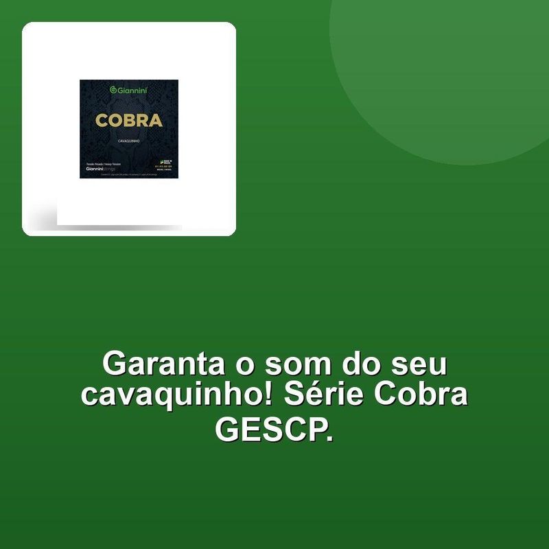 Encordoamento Cavaquinho Aço Pesada Cobra GescpDesbloqueie o som mais rico e atraente com o Encordoamento para Cavaquinho Aço Tensão Pesada Série Cobra GESCP. Nossa corda aço tensão pesada é projetada para entregar uma performance única, com alma feita de aço para uma melhor articulação e sustain. O revestimento de níquel garante uma superfície suave e resistente à corrosão, enquanto o acabamento em bolinha proporciona uma sensação confortável na mão do músico.Com um comprimento de escala de 340 mm (13 3/8), essa corda é ideial para músicos que buscam um som mais grave e profundo. A combinação de materiais de alta qualidade e o projeto cuidadoso resultam em uma corda que não só soa incrível, mas também é durável e resistente ao desgaste. Experimente o Encordoamento para Cavaquinho Aço Tensão Pesada Série Cobra GESCP e descubra como ele pode melhorar sua performance musical.Desbloqueie o som mais rico e atraente com o Encordoamento para Cavaquinho Aço Tensão Pesada Série Cobra GESCP. Nossa corda aço tensão pesada é projetada para entregar uma performance única, com alma feita de aço para uma melhor articulação e sustain. O revestimento de níquel garante uma superfície suave e resistente à corrosão, enquanto o acabamento em bolinha proporciona uma sensação confortável na mão do músico.Com um comprimento de escala de 340 mm (13 3/8), essa corda é ideial para músicos que buscam um som mais grave e profundo. A combinação de materiais de alta qualidade e o projeto cuidadoso resultam em uma corda que não só soa incrível, mas também é durável e resistente ao desgaste. Experimente o Encordoamento para Cavaquinho Aço Tensão Pesada Série Cobra GESCP e descubra como ele pode melhorar sua performance musical.
