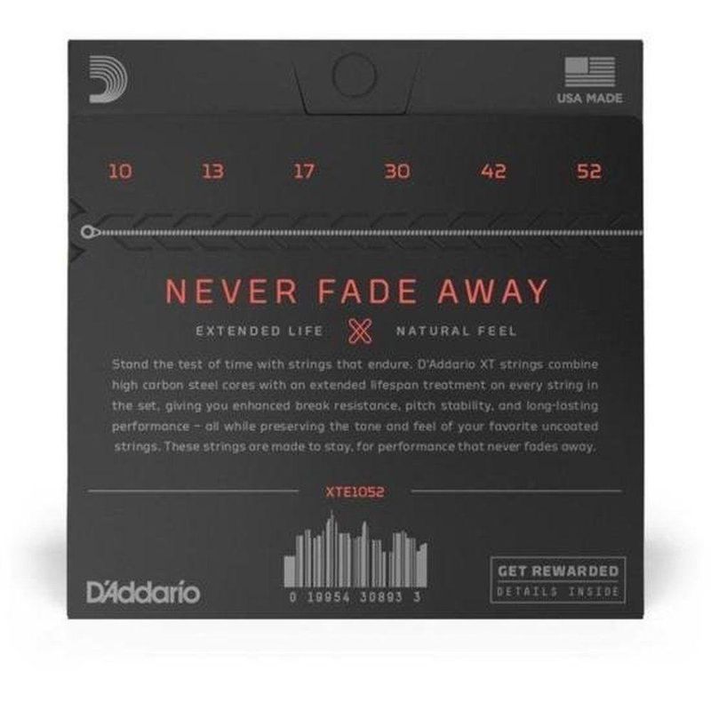 Encordoamento Guitarra D Addario .010-.052 Xt Nickel HibridoO Encordoamento Para Guitarra D Addario XTE1052 XT é a escolha líder de mercado para músicos exigentes. Seu núcleo robusto de aço de alto carbono, combinado com um revestimento ultrafino, oferece durabilidade excepcional e uma tocabilidade suave e confortável.Este modelo é reconhecido por sua longa vida útil, mesmo em condições de uso intensivo. Além disso, destaca-se pela estabilidade de afinação, assegurando um desempenho consistente em todas as situações musicais.Com uma tensão de .010 e revestimento de núcleo de aço de alto carbono com revestimento ultrafino, este encordoamento é ideal para guitarristas que buscam um desempenho de alta qualidade e uma experiência de jogo confortável.A D’Addario, desde 1974, se preocupa em entregar produtos de extrema qualidade em cordas para instrumentos musicais. Confie na escolha dos melhores músicos e escolha o Encordoamento Para Guitarra D Addario XTE1052 XT.O Encordoamento Para Guitarra D Addario XTE1052 XT é a escolha líder de mercado para músicos exigentes. Seu núcleo robusto de aço de alto carbono, combinado com um revestimento ultrafino, oferece durabilidade excepcional e uma tocabilidade suave e confortável.Este modelo é reconhecido por sua longa vida útil, mesmo em condições de uso intensivo. Além disso, destaca-se pela estabilidade de afinação, assegurando um desempenho consistente em todas as situações musicais.Com uma tensão de .010 e revestimento de núcleo de aço de alto carbono com revestimento ultrafino, este encordoamento é ideal para guitarristas que buscam um desempenho de alta qualidade e uma experiência de jogo confortável.A D’Addario, desde 1974, se preocupa em entregar produtos de extrema qualidade em cordas para instrumentos musicais. Confie na escolha dos melhores músicos e escolha o Encordoamento Para Guitarra D Addario XTE1052 XT.