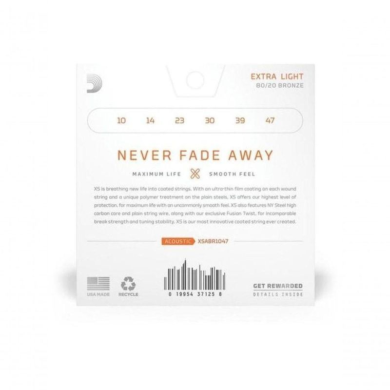Encordoamento Violão Aço Revestido 010-.047 Xs 80/20 BronzeO Encordoamento Para Violão D Addario XSABR1047 é uma opção de alta qualidade projetada para proporcionar uma experiência excepcional ao tocar violão. Com uma tensão extra-leve de 10-47, é adequado para aqueles que preferem uma sensação mais leve ao tocar. Este encordoamento possui um revestimento ultrafino em cada corda espiralada, juntamente com um tratamento de polímero exclusivo nas cordas lisascom bronze. Isso oferece uma durabilidade extrema, garantindo uma vida útil prolongada das cordas, além de proporcionar um toque suave e confortável durante a execução. Aplicação:Violão aço Tensão:.010 - .047 - Extra-Leve Acabamento:80/20 Bronze Pesquisa:encordoamento|violão aço|encordoamento para violão|daddarioO Encordoamento Para Violão D Addario XSABR1047 é uma opção de alta qualidade projetada para proporcionar uma experiência excepcional ao tocar violão. Com uma tensão extra-leve de 10-47, é adequado para aqueles que preferem uma sensação mais leve ao tocar. Este encordoamento possui um revestimento ultrafino em cada corda espiralada, juntamente com um tratamento de polímero exclusivo nas cordas lisascom bronze. Isso oferece uma durabilidade extrema, garantindo uma vida útil prolongada das cordas, além de proporcionar um toque suave e confortável durante a execução. Aplicação:Violão aço Tensão:.010 - .047 - Extra-Leve Acabamento:80/20 Bronze Pesquisa:encordoamento|violão aço|encordoamento para violão|daddario