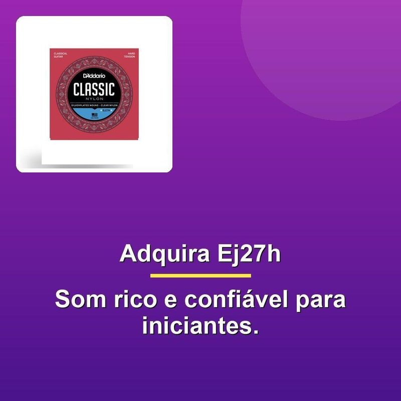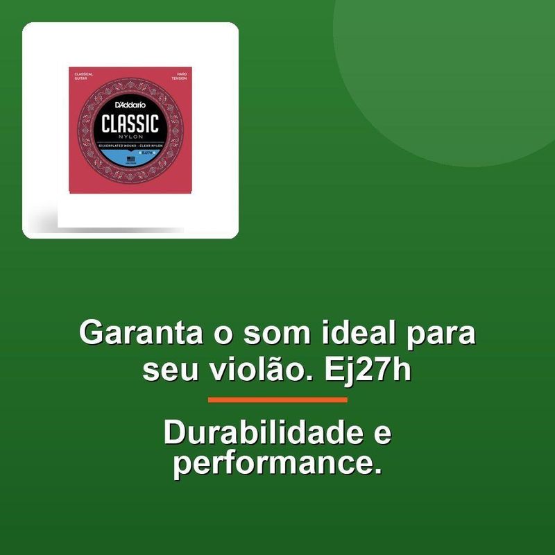 Encordoamento Violão Nylon Classic Ej27hDesbloqueie o som mais rico e duradouro com o Encordoamento Para Violão Nylon Classic Ej27h. Esse conjunto de cordas é ideal para estudantes e iniciantes, oferecendo um timbre encorpado e resistente. Com 3 primas de nailon translúcido e 3 bordões com enrolamento de fios de cobre com banho de prata sobre uma base de nailon, você terá um instrumento que produzirá um som mais complexo e atraente.As cordas D'Addario Student são conhecidas por sua excelência e durabilidade, tornando-as uma escolha popular entre músicos iniciantes e estudantes. Com especificações precisas, como diâmetros de 0.029 a 0.044 polegadas e tensões de 12.0 a 16.3 libras, você terá controle total sobre o seu som.Com o Encordoamento Para Violão Nylon Classic Ej27h, você pode desfrutar de uma performance mais confiável e duradoura. Além disso, o conjunto é fácil de instalar e manter, o que é fundamental para qualquer músico que queira se concentrar em melhorar sua habilidade. Desbloqueie o seu potencial musical com o Encordoamento Para Violão Nylon Classic Ej27h.Desbloqueie o som mais rico e duradouro com o Encordoamento Para Violão Nylon Classic Ej27h. Esse conjunto de cordas é ideal para estudantes e iniciantes, oferecendo um timbre encorpado e resistente. Com 3 primas de nailon translúcido e 3 bordões com enrolamento de fios de cobre com banho de prata sobre uma base de nailon, você terá um instrumento que produzirá um som mais complexo e atraente.As cordas D'Addario Student são conhecidas por sua excelência e durabilidade, tornando-as uma escolha popular entre músicos iniciantes e estudantes. Com especificações precisas, como diâmetros de 0.029 a 0.044 polegadas e tensões de 12.0 a 16.3 libras, você terá controle total sobre o seu som.Com o Encordoamento Para Violão Nylon Classic Ej27h, você pode desfrutar de uma performance mais confiável e duradoura. Além disso, o conjunto é fácil de instalar e manter, o que é fundamental para qualquer músico que queira se concentrar em melhorar sua habilidade. Desbloqueie o seu potencial musical com o Encordoamento Para Violão Nylon Classic Ej27h.
