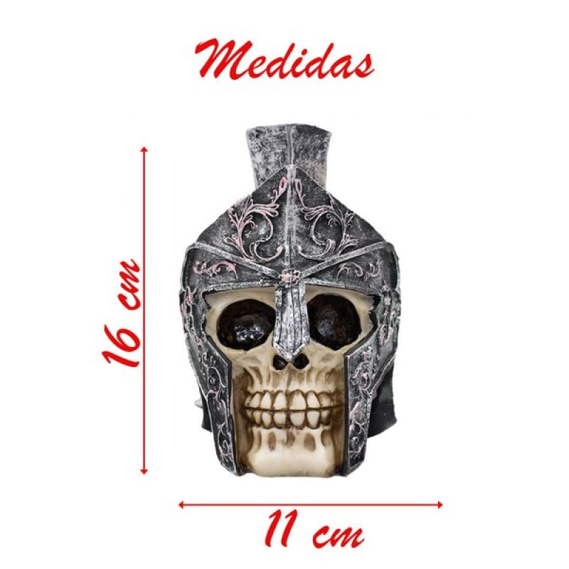 Enfeite Caveira Capacete Romano Espinhos Crânio Resina - Enfeite Caveira Capacete Romano Espinhos Crânio Resina Peça confeccionada em resina de alta Qualidade, muito resistente e de ótimo acabamento. Decorado manualmente, sujeito a variação de tonalidade. Comprimento: 13 cm Largura: 11 cm Altura: 17 cm Características Gerais do Produto: • Material: Resina Garantia: • Garantia do site - 1 Mês
