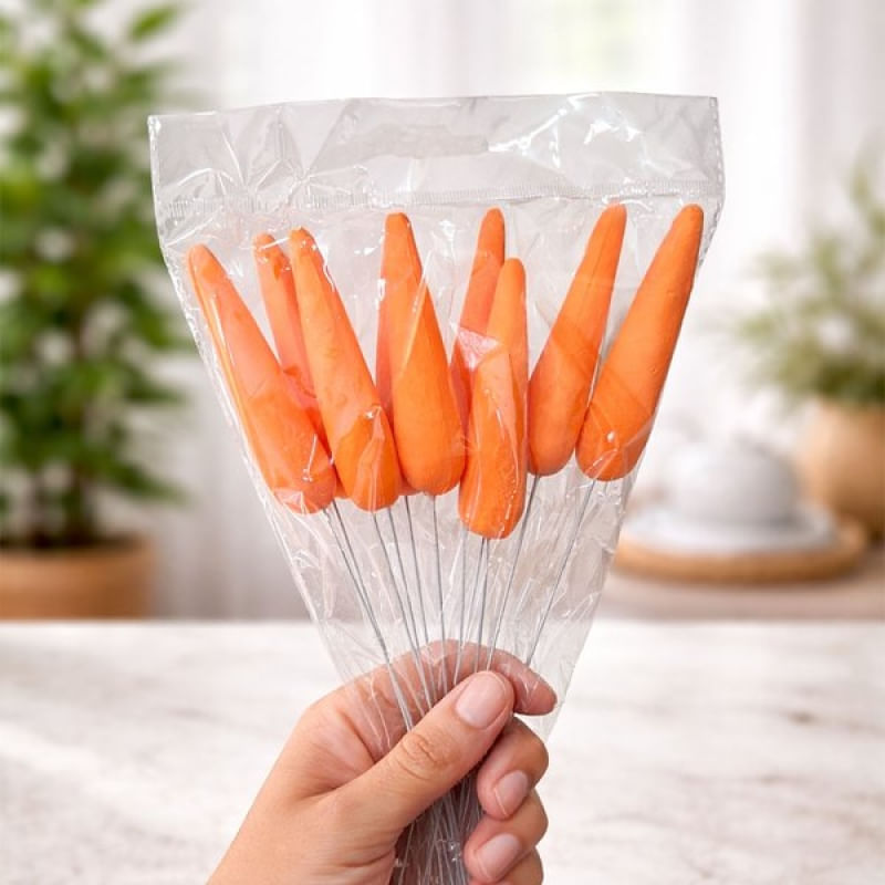 Enfeite Cenouras Cenourinhas Palito Páscoa De 24cm Kit 54pçs - Deixe sua decoração de Páscoa ainda mais charmosa e temática com o Kit de Enfeites Cenouras no Palito. Ideal para compor arranjos, vasos, cestas, mesas decoradas, vitrines e ambientes residenciais ou comerciais Características do produto: Tema: Páscoa Medidas: 24cm x 2cm Material: decorativo leve e resistente em isopor Modelo: Cenoura no palito Conteúdo da embalagem: 6 Pacote Com 9 Cenourinhas no Palito de 24cm Características Gerais do Produto: • Material: Isopor • Modelo: Enfeite De Páscoa • Cor: Laranja • Dimensões aproximadas: 24cm x 2cm Garantia: • Garantia do site - 1 Mês