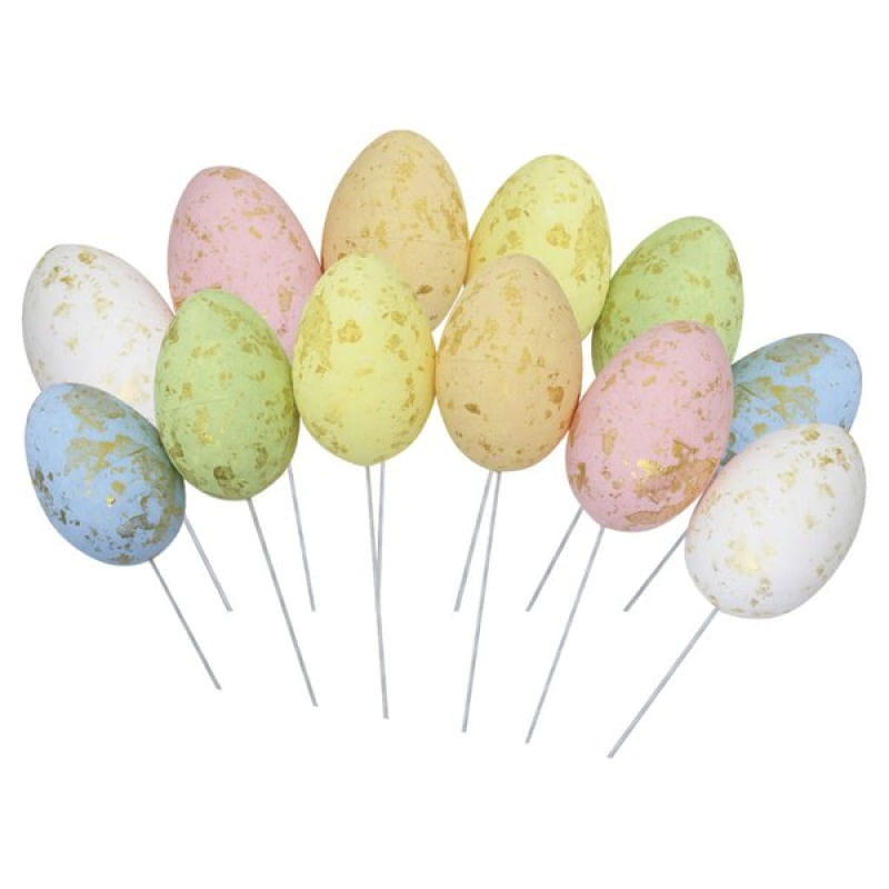 Enfeite Decorativo Ovo De Páscoa 12 Unidades Com Haste - Acompanha: 12 ovos com machinha dourada. Os mesmos possuem hastes, de aluminio bem fininhas revestidas com um plástico. Material: isopor Medidas dos ovos Altura 5,5cm. Altura com a haste: 22cm. Características Gerais do Produto: • Material: Tecido • Cor: Vermelho Garantia: • Garantia de fábrica - 1 Mês