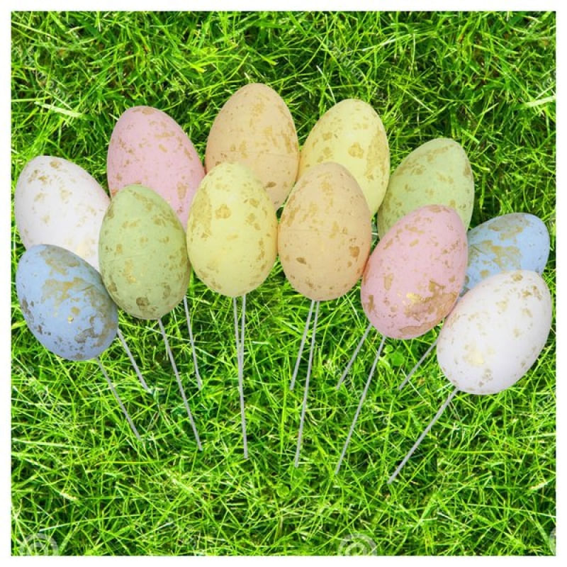 Enfeite Decorativo Ovo De Páscoa 24 Unidades Com Haste - Acompanha: 24 ovos com machinha dourada. Os mesmos possuem hastes, de aluminio bem fininhas revestidas com um plástico. Material: isopor Medidas dos ovos Altura 5,5cm. Altura com a haste: 22cm. Características Gerais do Produto: • Material: Tecido • Cor: Vermelho Garantia: • Garantia de fábrica - 1 Mês