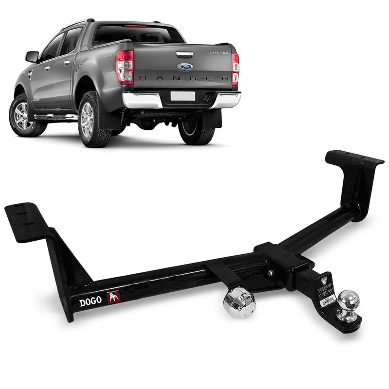 Engate Reboque Removível Ranger 2022 2023 Aço Carbono - Dogo/Bulldog A marca Dogo/Bulldog tem sido a escolha dos mais exigentes nos mercados e aplicações no mundo. Os engates da linha Bulldog são construídos com excelente matéria prima, supervisionados por uma engenharia altamente qualificada, atendendo todos os requisitos de segurança. Desenvolvido especialmente para a Ford Ranger e quem procura um engate de alta resistência que não demonstre fraqueza ao utilizar no reboque ou tracionamento de carretas, trailers, etc. Possuindo uma capacidade de tração com sistema de distribuição de carga 2724 Kg e sem sistema de distribuição de carga 1816 Kg e o peso sobre a esfera de 65kg. Fabricado em aço carbono , material já conhecido pela excelente qualidade e resistência. Além de acompanhar Kit com bola, tomada de engate e trava antifurto e antirruído com chave, para maior segurança do produto e ao proprietário do veículo. Preserva a originalidade do veículo, pois é instalado sobre a furação original do veiculo e homolagado pelo inmetro rf3 nº005 e regularizado de acordo com a resolução nº197/06 do Contran, preservando assim sua originalidade e garantia. Especificações Técnicas: Capacidade com sistema de distribuição de carga 2724 Kg Capacidade sem sistema de distribuição de carga 1816 Kg Regularizado de acordo com resolução n°197 do Contran Acompanha Trava Antifurto e Antirruído com Chave Tomada e chicote para ligação elétrica Acompanha esfera cromada de 50mm Pintura eletrostática a pó Fabricado em aço carbono Peso sobre a esfera de 65kg Compatível com Tanque Arla Tabela de Aplicação: Ford Ranger 2022 Ranger 2023 Compatível somente com a versão a Diesel que possua Tanque Arla. OBS: Não compativel com a Ranger 2024