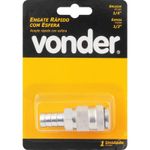 Ref.: do Fornecedor:5114612001Marca:VonderConteúdo da Embalagem:1 EngateDestaques e diferenciais:Fabricado em aço carbono zincado, proporcionando boa resistência à oxidação/corrosão.Aplicações e dicas de uso:Indicado para conectar mangueiras em redes de ar comprimidoCaracterísticas Técnicas:Medida da espiga: 1/2" Medida do encaixe do engate rápido: 0.1/4 " Material do engate rápido para mangueira de ar: Aço carbono Acabamento do engate rápido para mangueira de ar: Zincado Tipo do engate rápido para mangueira de ar: Com esfera