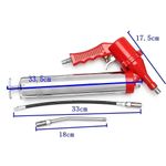 Engraxadeira Pneumatica Bomba De Graxa Lubrificador Com Acessorios E Mangueira FlexivelEngraxadeira Pneumática – Potente e Durável para Aplicações ProfissionaisA Engraxadeira Pneumática é a ferramenta ideal para lubrificação precisa e eficiente em oficinas e ambientes industriais. Com construção totalmente em metal, ela oferece resistência, durabilidade e excelente desempenho, perfeita para profissionais que buscam rapidez e praticidade no processo de engraxamento.Características PrincipaisEnchimento Pressurizado ou a Granel: Flexibilidade no enchimento, possibilitando o uso em diversas condições e necessidades.Aumento de Pressão de 50 Vezes: Garante uma lubrificação potente, atingindo áreas de difícil acesso com facilidade.Capacidade do Reservatório: Recipiente com capacidade para aproximadamente 500g de graxa e volume total de 400 cc, permitindo maior autonomia de uso.Pressão de Trabalho: Funciona com pressão de 90 psi, proporcionando uma aplicação estável e precisa.Mangueira Recomendável: Compatível com mangueiras de 3/8 para maior praticidade.Dimensões e MaterialComprimento: 400 mm, garantindo um alcance adequado.Acabamento: Detalhes em vermelho, branco ou alumínio, conforme disponibilidade.Itens Inclusos01 Bico Fixo01 Bico Flexível01 Pino para EngateA Engraxadeira Pneumática é essencial para quem busca eficiência e rapidez, ideal para aplicações que exigem força e precisão. Obtenha um equipamento robusto e confiável para otimizar seu trabalho de lubrificação!Medidas: 33,5 x 17,5 cmEngraxadeira Pneumática – Potente e Durável para Aplicações ProfissionaisA Engraxadeira Pneumática é a ferramenta ideal para lubrificação precisa e eficiente em oficinas e ambientes industriais. Com construção totalmente em metal, ela oferece resistência, durabilidade e excelente desempenho, perfeita para profissionais que buscam rapidez e praticidade no processo de engraxamento.Características PrincipaisEnchimento Pressurizado ou a Granel: Flexibilidade no enchimento, possibilitando o uso em diversas condições e necessidades.Aumento de Pressão de 50 Vezes: Garante uma lubrificação potente, atingindo áreas de difícil acesso com facilidade.Capacidade do Reservatório: Recipiente com capacidade para aproximadamente 500g de graxa e volume total de 400 cc, permitindo maior autonomia de uso.Pressão de Trabalho: Funciona com pressão de 90 psi, proporcionando uma aplicação estável e precisa.Mangueira Recomendável: Compatível com mangueiras de 3/8 para maior praticidade.Dimensões e MaterialComprimento: 400 mm, garantindo um alcance adequado.Acabamento: Detalhes em vermelho, branco ou alumínio, conforme disponibilidade.Itens Inclusos01 Bico Fixo01 Bico Flexível01 Pino para EngateA Engraxadeira Pneumática é essencial para quem busca eficiência e rapidez, ideal para aplicações que exigem força e precisão. Obtenha um equipamento robusto e confiável para otimizar seu trabalho de lubrificação! Medidas: 33,5 x 17,5 cm