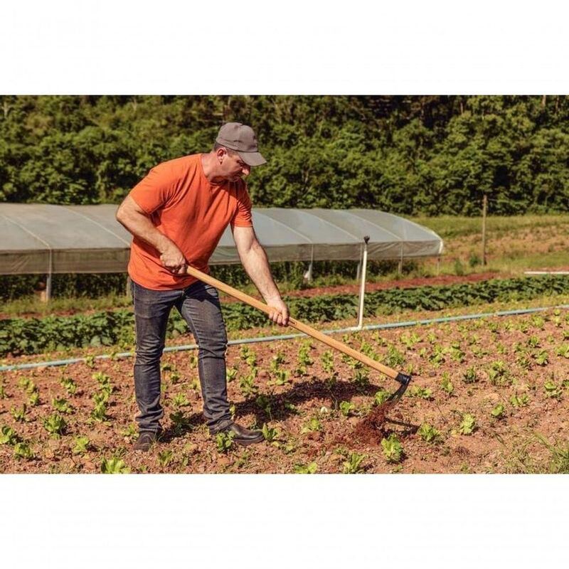 Enxada Sul Tramontina Em Aço Com Cabo De Madeira 130cmA enxada sul Tramontina em aço com cabo de madeira 130 cm é a ferramenta ideal para quem busca praticidade e eficiência no campo ou no jardim. Produzida em aço carbono com pintura eletrostática, ela oferece alta resistência à oxidação e excelente durabilidade. Seu cabo de madeira renovável, com 130 centímetros de comprimento, proporciona um manuseio firme e confortável, facilitando o trabalho mesmo em longos períodos de uso. Com a qualidade Tramontina, suas atividades se tornam mais ágeis e produtivas.Recomendações de Uso:Modo de uso: Utilizada para cavar e revolver o solo, incorporando adubos e corretivos. Ainda auxilia na modelagem de canteiros e na capina de ervas daninhas. ;Para descarte dos produtos e embalagens siga as orientações de reciclagem vigentes.- Foto meramente ilustrativa.Informações Adicionais:- Possui olho de 38 mm de diâmetro;- Fabricada em aço carbono especial de alta qualidade;- A enxada é leve, que gera menos esforço físico do usuário e proporciona maior produtividade.- Recebe pintura eletrostática a pó, que tem uma melhor apresentação visual e maior proteção contra oxidação;- A tinta utilizada na pintura é isenta de metais pesados na sua composição, o que minimiza o impacto ambiental;- O cabo de 130 cm desta ferramenta, além de possuir ótima resistência, é produzido com madeira de origem renovável;- A enxada é temperada em todo o corpo da peça, proporcionando maior resistência e menor desgaste durante o uso;- A lâmina possui tamanho e sua afiação é feita em máquinas automatizadas, proporcionando excelente durabilidade do fio;- Cabo com acabamento envernizado, para um melhor acabamento e apresentação do produto. A camada protetora em verniz incolor realça sua tonalidade, concedendo brilho e um toque mais liso ao produto;- Lâmina com ângulo intermediário em relação ao cabo: torna-se ideal para revolver o solo de forma superficial, promover pequenos sulcos e incorporar adubos. Na construção civil, facilita o preparo de argamassas e outras misturas;- O sistema de encabamento com bucha plástica proporciona excelente fixação da enxada, evitando que os cabos se soltem durante o uso. A bucha absorve a contração da madeira, mantendo o cabo sempre firme, e auxilia na absorção do impacto durante o uso.