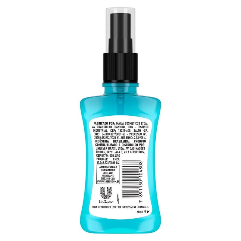 Enxaguante Bucal em Spray Closeup Go Ice Sem Álcool 35ml Mantenha seu hálito fresco e protegido em qualquer lugar com o Spray Bucal Closeup Go! Ice Zero Álcool, o enxaguante bucal em formato portátil que garante limpeza instantânea e sensação de frescor duradoura, sem necessidade de enxágue. O que é e para que serve O Closeup Go! Ice é um mini enxaguante bucal em spray, formulado para eliminar até 99% dos germes e bactérias causadores do mau hálito, oferecendo refrescância imediata e praticidade para o dia a dia. Seu formato compacto é perfeito para levar na bolsa, no bolso ou no carro, mantendo sua higiene bucal sempre em dia, onde quer que você esteja. Benefícios e diferenciais Hálito fresco instantâneo, com sensação gelada de longa duração. Zero álcool, ideal para bocas sensíveis e uso frequente. Combate 99% dos germes causadores do mau hálito. Portátil e discreto, perfeito para levar em viagens, trabalho ou compromissos. Ação imediata e sem enxágue, basta aplicar e sentir a refrescância. Hálito fresco por até 8 horas, reforçando a higiene bucal entre as escovações. Como usar Espirre 3 vezes na boca sempre que desejar refrescar o hálito. Não é necessário enxaguar. Pode ser usado várias vezes ao dia, conforme a necessidade. Advertências Não utilizar se houver lesões ou irritação bucal. Evite contato com pele ou mucosas sensíveis. Mantenha fora do alcance de crianças. Em caso de alergia ou irritação, suspenda o uso e procure orientação médica.