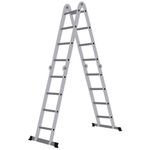 Escada Alumínio Multifunção 3x4 12 Degraus 8 Em 1 WorkerCódigo do Fornecedor: 428132Marca: WorkerConteúdo da embalagem: 1 Escada Alumínio Multifunção 3x4 12 Degraus 8 Em 1 WorkerA Escada Articulada 8 em 1 Alumínio 12 Degraus 3,26m Worker, podendo ser utilizado em até 8 posições diferentes de acordo com a necessidade do usuário. A Escada Articulada é extremamente versátil, leve e fácil de transportar. Pode ser usada como escada de encosto, escada de pintor em A, andaime e outras 7 posições.Características:Largura da escada: 34cmLargura da base: 60cmIndicaão de ângulo de inclinação de 65° a 75°Especificações:Dobradiças em açoUso doméstico e profissionalPrática e funcionalAderência nos degrausPés emborrachados e antiderrapantesPossui travamento automáticoPossui troca de posição de forma rápida e práticaContém travas de segurança nas catracasCapacidade máxaxima: 150KgPeso: 10,8KgDegraus: 12 (3x4)Altura estendida: 3,26mAltura fechada: 0,89mAltura Pintor: 1,59mAltura Andaime: 0,88mGarantia: 3 meses Capacidade de Peso: 150 | Quantidade de Degraus: 16