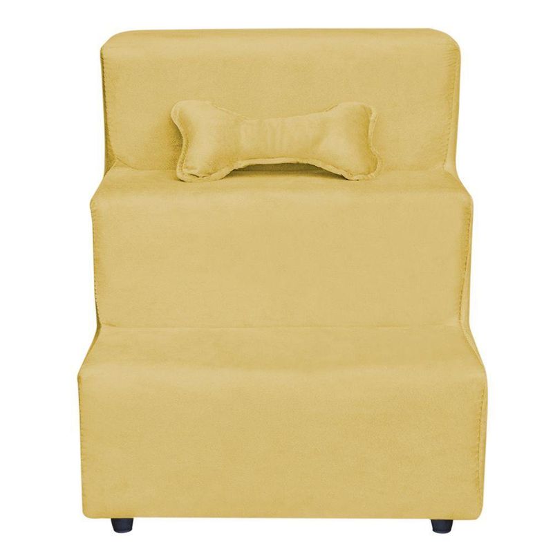 Escadinha Pet 3 Degraus Cachorro E Gato Veludo AmareloA Escadinha Pet de 3 Degraus Premium é a escolha ideal para quem deseja proporcionar mais conforto e aos seus animais de estimação. Com um design funcional e materiais de alta qualidade, ela se torna um acessório indispensável para o bem-estar dos pets, permitindo que eles alcancem com facilidade e locais elevados, como camas e sofás.Projetada para oferecer estabilidade e durabilidade, sua estrutura é resistente e leve, garantindo praticidade no uso diário. Os degraus são revestidos com materiais que proporcionam aderência e conforto, reduzindo o impacto nas articulações dos pets ao subir e descer.Material da estrutura:Madeira de reflorestamento EucaliptoFixação: Grampos e ParafusosTecido: VeludoDimensões:Altura: 50 cmLargura: 40 cmProfundidade: 48 cmPeso: 5kgLimpeza:- Utilizar um pano limpo e seco. Não limpar com produtos abrasivos ou escovas.- Não deixar exposta à luz do sol diretamente pois isso irá diminuir a vida útil do produto, fazendo-o envelhecer precocemente.Montagem:- O produto será entregue montado