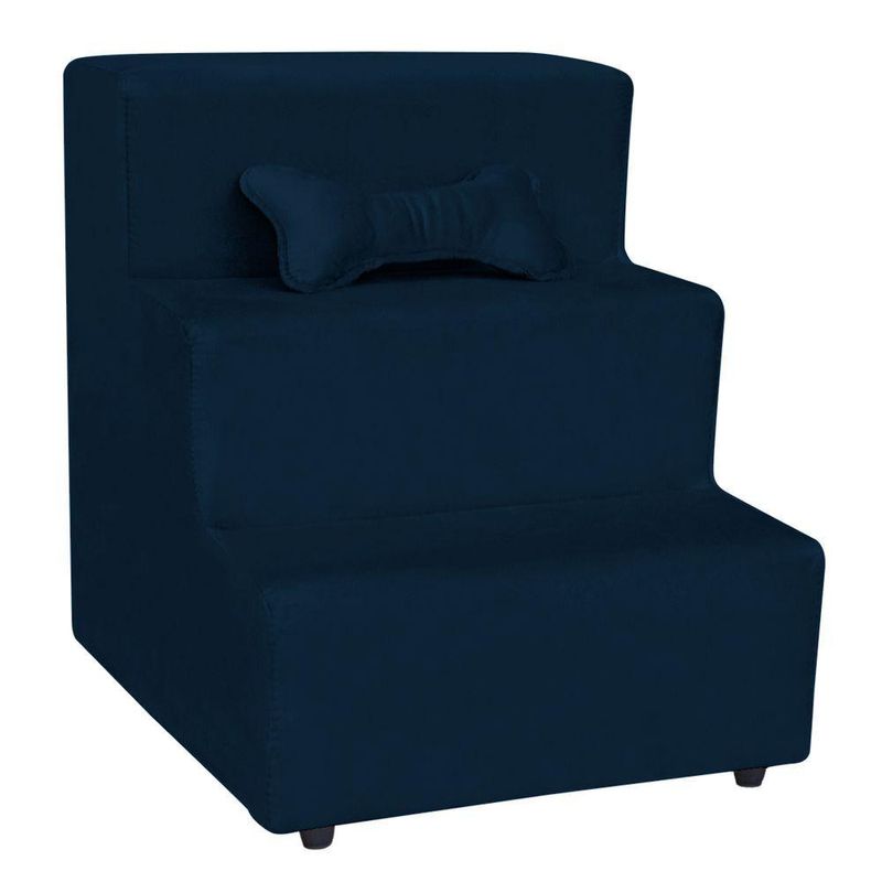 Escadinha Pet 3 Degraus Cachorro E Gato Veludo Azul MarinhoA Escadinha Pet de 3 Degraus Premium é a escolha ideal para quem deseja proporcionar mais conforto e aos seus animais de estimação. Com um design funcional e materiais de alta qualidade, ela se torna um acessório indispensável para o bem-estar dos pets, permitindo que eles alcancem com facilidade e locais elevados, como camas e sofás.Projetada para oferecer estabilidade e durabilidade, sua estrutura é resistente e leve, garantindo praticidade no uso diário. Os degraus são revestidos com materiais que proporcionam aderência e conforto, reduzindo o impacto nas articulações dos pets ao subir e descer.Material da estrutura:Madeira de reflorestamento EucaliptoFixação: Grampos e ParafusosTecido: VeludoDimensões:Altura: 50 cmLargura: 40 cmProfundidade: 48 cmPeso: 5kgLimpeza:- Utilizar um pano limpo e seco. Não limpar com produtos abrasivos ou escovas.- Não deixar exposta à luz do sol diretamente pois isso irá diminuir a vida útil do produto, fazendo-o envelhecer precocemente.Montagem:- O produto será entregue montado