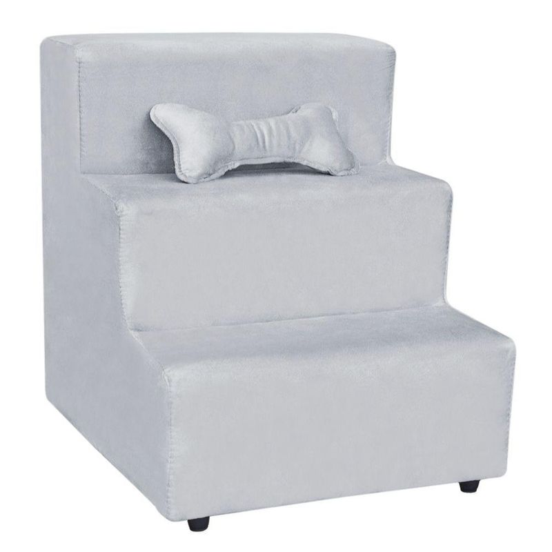 Escadinha Pet 3 Degraus Cachorro E Gato Veludo CinzaA Escadinha Pet de 3 Degraus Premium é a escolha ideal para quem deseja proporcionar mais conforto e aos seus animais de estimação. Com um design funcional e materiais de alta qualidade, ela se torna um acessório indispensável para o bem-estar dos pets, permitindo que eles alcancem com facilidade e locais elevados, como camas e sofás.Projetada para oferecer estabilidade e durabilidade, sua estrutura é resistente e leve, garantindo praticidade no uso diário. Os degraus são revestidos com materiais que proporcionam aderência e conforto, reduzindo o impacto nas articulações dos pets ao subir e descer.Material da estrutura:Madeira de reflorestamento EucaliptoFixação: Grampos e ParafusosTecido: VeludoDimensões:Altura: 50 cmLargura: 40 cmProfundidade: 48 cmPeso: 5kgLimpeza:- Utilizar um pano limpo e seco. Não limpar com produtos abrasivos ou escovas.- Não deixar exposta à luz do sol diretamente pois isso irá diminuir a vida útil do produto, fazendo-o envelhecer precocemente.Montagem:- O produto será entregue montado