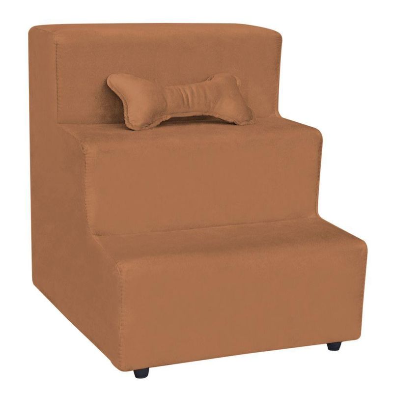 Escadinha Pet 3 Degraus Cachorro E Gato Veludo TerracotaA Escadinha Pet de 3 Degraus Premium é a escolha ideal para quem deseja proporcionar mais conforto e aos seus animais de estimação. Com um design funcional e materiais de alta qualidade, ela se torna um acessório indispensável para o bem-estar dos pets, permitindo que eles alcancem com facilidade e locais elevados, como camas e sofás.Projetada para oferecer estabilidade e durabilidade, sua estrutura é resistente e leve, garantindo praticidade no uso diário. Os degraus são revestidos com materiais que proporcionam aderência e conforto, reduzindo o impacto nas articulações dos pets ao subir e descer.Material da estrutura:Madeira de reflorestamento EucaliptoFixação: Grampos e ParafusosTecido: VeludoDimensões:Altura: 50 cmLargura: 40 cmProfundidade: 48 cmPeso: 5kgLimpeza:- Utilizar um pano limpo e seco. Não limpar com produtos abrasivos ou escovas.- Não deixar exposta à luz do sol diretamente pois isso irá diminuir a vida útil do produto, fazendo-o envelhecer precocemente.Montagem:- O produto será entregue montado