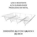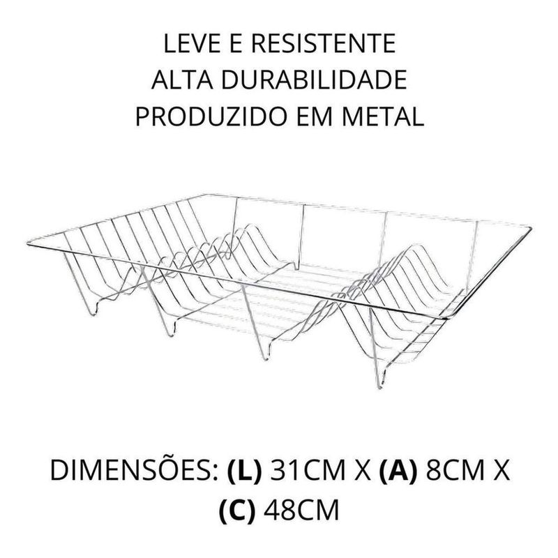 Escorredor De Louça Aramado 18 Pratos - FerroUma solução robusta e prática para quem deseja manter a bancada da cozinha organizada. Fabricado em metal resistente com pintura ou acabamento preto, o design permite um eficiente escoamento da água, evitando acúmulo e permitindo que pratos, copos e talheres sequem mais rapidamente . Seu formato tipo “cama” oferece suporte para cerca de 18 pratos dispostos verticalmente, conferindo organização e praticidade durante o uso, que facilita a limpeza e evita respingos sobre a pia ou bancada. A estrutura leve e compacta é ideal para quem busca otimização do espaço sem abrir mão de resistência e durabilidadeEspecificações:Dimensões: 48?cm de comprimento, 31?cm de largura e 9?cm de alturaMaterial: FerroCor: CromadoPeso Aprox.: 300gContém:01 Escorredor de Louça Aramado - Ferro