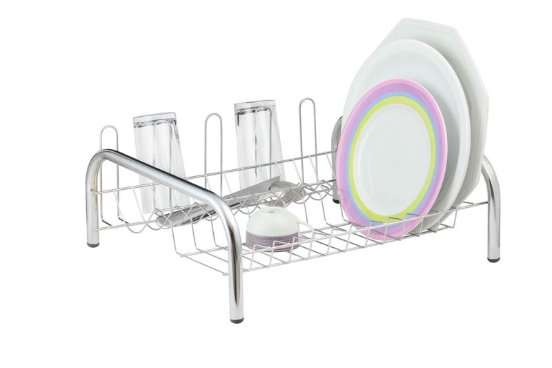 Escorredor de louças cama tubo com porta copos, fabricado em aço cromado, material conhecido por sua durabilidade e resistência. O produto possui capacidade para até 12 pratos e 05 copos e utensílios diversos, tendo as dimensões ideais para comportar suas louças com mais praticidade e higiene. Invista em organizadores e outros utensílios que tornam o espaço gourmet dinâmico e funcional. Observação: os demais itens na imagem são ilustrativos e não acompanham o produto. Dimensões: 41 Comprimento x 37 Largura x 14 Altura