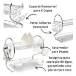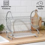 Escorredor de Louças Base Coletora Porta Copos e Talheres ===================================== Sua estrutura em aço cromado resistente garante durabilidade e estabilidade no uso diário. O design inteligente conta com dois níveis: o superior acomoda pratos e o inferior é ideal para utensílios diversos. Além disso, o modelo possui porta copos e porta talheres laterais, otimizando o espaço e organizando os itens de forma prática e acessível. A bandeja plástica coletora na base evita respingos e mantém a pia seca, recolhendo a água que escorre da louça. Fácil de desmontar e limpar, o escorredor é compacto e funcional, adaptando-se bem a cozinhas de diferentes tamanhos para manter sua cozinha organizada, com estilo, resistência e praticidade no dia a dia. ===================================== Contém: 01 Escorredor de Pratos Especificações: - Material: Aço Cromado e Plástico - Medida: 40cm x 24cm x 38cm - Peso: 1140 gramas ===================================== Devido à diferença entre monitores e iluminação diferentes, pode haver variação na tonalidade apresentada no anúncio. Medidas muito aproximadas.