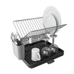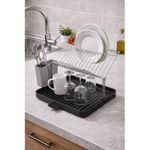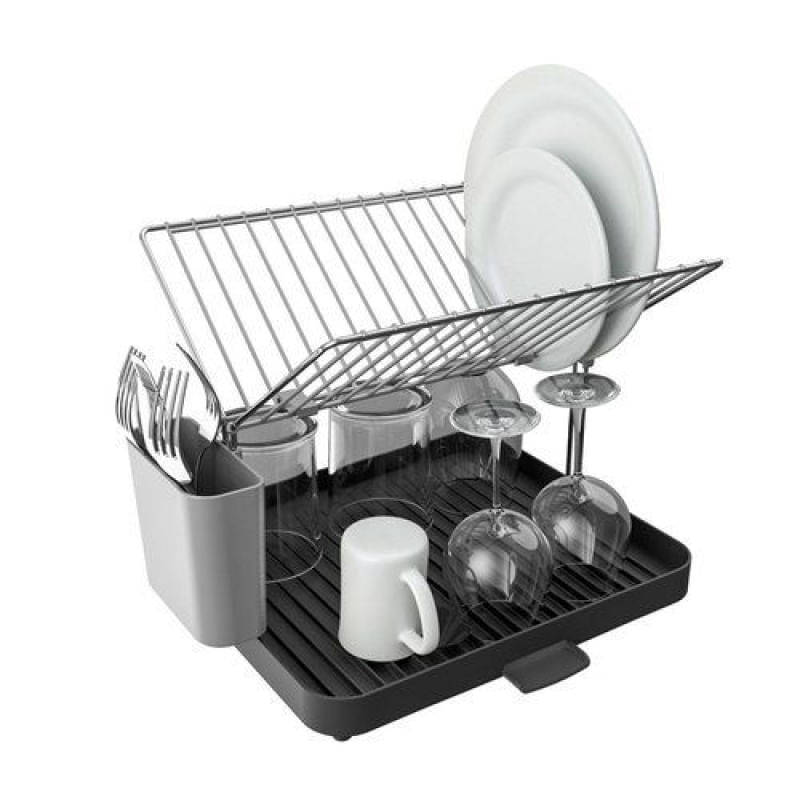 Maximize a eficiência da sua bancada com este escorredor de design inteligente em formato de Y, ideal para cozinhas modernas que prezam pela organização. Sua estrutura inclinada otimiza a secagem de até 13 pratos, enquanto a bandeja coletora integrada mantém sua pia sempre seca e livre de resíduos. Compacto, mas extremamente funcional, ele une a elegância do aço inox com a praticidade de um porta-talheres removível para o seu dia a dia.Design Inteligente em 2 Níveis: O suporte inclinado permite acomodar pratos na parte superior e copos ou xícaras na base, dobrando sua capacidade de uso.Sistema de Drenagem Direta: A bandeja coletora evita o acúmulo de água na pia, prevenindo o mau cheiro e a proliferação de bactérias.Resistência Total à Corrosão: Estrutura em aço inoxidável de alta qualidade, projetada para suportar a umidade constante sem enferrujar.Praticidade na Limpeza: O porta-talheres e a base em plástico ABS são totalmente removíveis, facilitando a higienização rápida do conjunto.Economia de Espaço: Com apenas 32cm de largura, é a solução perfeita para apartamentos e cozinhas pequenas sem abrir mão da organização.Especificações Técnicas?Produto: Escorredor de Pratos Metal com Porta TalheresCapacidade: 13 Pratos + área para copos e xícarasMaterial da Estrutura: Aço Inoxidável (Resistente à corrosão)Material da Base: Plástico ABS DurávelAltura: 29 cmLargura: 32 cmComprimento: 28 cmCor: Metalizado com detalhes em Preto e CinzaPeso: 744gDiferencial: Porta-talheres removível e suporte inclinado