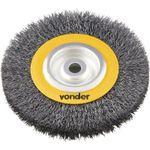 Conteúdo da embalagem1 Escova circular Aplicações e dicas de usoIndicada para limpeza de peças em geral. Utilizada em motoesmeril. DETALHES TÉCNICOS Material/acabamento das cerdas da escova: Aço carbono/polido Tipo de cerdas da escova: Ondulada Diâmetro externo da escova (pol): 6 " Espessura da escova (pol): 1 " Diâmetro do furo da escova (pol): 5/8 " Rotação máxima (rpm): 6000 rpm