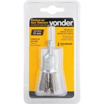 Escova de aço Inox Torcido, Tipo Pincel, 19 mm, Vonder OstenVonder - Conteúdo da embalagem: 1 Escova pincel. Aplicação: Indicada para limpezas em geral. Utilizada furadeiras e retificadeiras, desde que não exceda a rotação máxima da escova. Destaques: Cerdas fabricadas em aço inox, proporcionando boa resistência à oxidação. Referência: 6325100019 Garantia - E (CDC): Garantia legal: 90 dias Massa aproximada (peso): 0,040 kg Diâmetro do fio/tipo: 0,30 mm Material/acabamento das cerdas da escova: Aço inoxidável Diâmetro: 19 mm Rotação máxima - rpm: 20.000/min Diâmetro da haste: 6 mm Destaques Comercial: Cerdas fabricadas em aço inox, proporcionando boa resistência à oxidação. Aplicação Comercial: Indicada para limpezas em geral. Usada em furadeiras e retificadeiras, sem exceder a rotação máxima. Características Gerais do Produto: Garantia: • 3 Meses