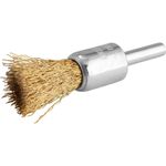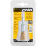 Escova de aço Latonado Ondulado, Tipo Pincel, 16 mm, Vonder - Conteúdo da embalagem: 1 Escova pincel. Aplicação: Indicada para limpezas em geral. Utilizada em furadeiras e retificadeiras, desde que não exceda a rotação máxima da escova. Destaques: Possui acabamento latonado que proporciona boa resistência à oxidação. Referência: 6325016000 Garantia - E (CDC): Garantia legal: 90 dias Massa aproximada (peso): 0,035 kg Material/acabamento das cerdas da escova: Aço carbono/latonado Diâmetro: 16 mm Rotação máxima - rpm: 20.000/min Diâmetro da haste: 6 mm Destaques Comercial: Possui acabamento latonado que proporciona boa resistência à oxidação. Aplicação Comercial: Indicada para limpezas em geral, usada em furadeiras e retificadeiras dentro da rotação máxima permitida. Características Gerais do Produto: Garantia: • 3 Meses