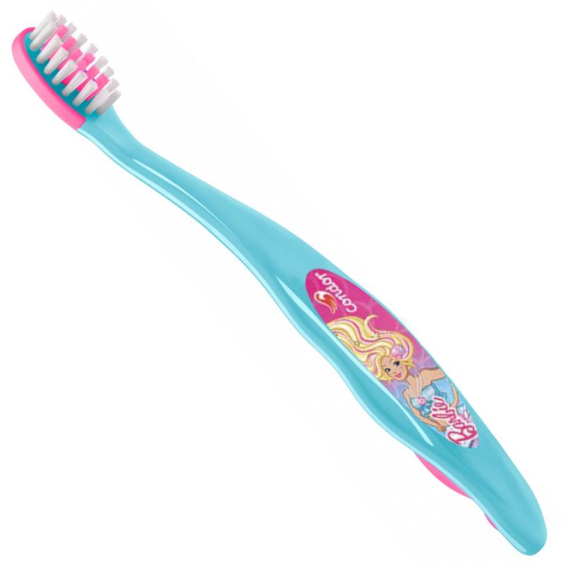 ESCOVA DE DENTE BARBIE - KIDS - 2-4 ANOS - 3167-3 - CONDOR A Escova Dental Kids Barbie, seu desenho facilita o aprendizado da escovação dos dentes. Especial para limpeza dos dentes de leite, as cerdas são extramacias e tufos frontais mais altos para escovação dos dentes mais profundos. Conta com cabo e limpador de língua emborrachados. Disponível na versão Extramacia com 2 combinações de cores. A escova perfeita para o aprendizado da escovação. Indicação: 2 a 4 anos CERDAS EXTRA MACIAS ESPECIAL PARA LIMPEZA DOS DENTES DE LEITE Grátis Capa Protetora de Cerdas. *COR SORTIDA* Não é possível escolher a cor no momento da compra. ***APÓS A COMPRA NOS ENVIE UMA MESNSAGEM, SOLICITANDA A COR DESEJADA, CASO HAJA ESTOQUE, LHE ENVIAREMOS A DESEJADA.***