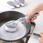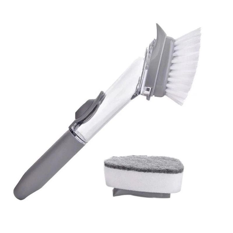 Escova De Limpeza 2 Em 1 Dispenser Detergente Lava LouçaEscova de Limpeza com Dispenser de SabãoLimpeza prática e eficiente para sua cozinha!Esta escova combina design moderno e funcionalidade, permitindolavar louças, panelas, pias e azulejos com facilidade.Possui um dispenser de sabão líquido que evita desperdícios:basta apertar o botão de silicone para liberar a quantidade ideal de detergente.Seu formato anatômico oferece conforto ao segurare praticidade para pendurar no espaço de sua escolha.Especificações: CinzaMaterial: PP + Borracha + EsponjaTamanho da escova: 23 cmLimpador esfregão: 8 x 4,5 x 5 cmLimpador esponja: 9 x 5 x 3,5 cmCapacidade do dispenser: 150 mlItens Inclusos:1 Escova com dispenser1 Cabeça de escova1 Cabeça de esponjavipshop
