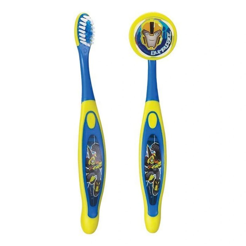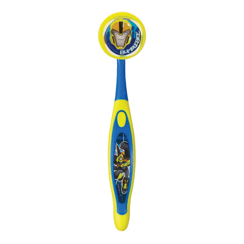 Escova Dental Infantil Transformers Bumblebee - ZEINEscova Dental Infantil com capa protetora e estampa do Transformers Bumblebee - As cerdas são especiais e macias; - Cabeça anatômica e totalmente arredondada; - Cabo emborrachado; - Capa protetora com Estampa do personagem Imagens meramente ilustrativasCaracterísticas: Indicada para crianças de 2 a 4 anos Conteúdo: 1 escova dental infantil com capa protetora Composição: cabo em polipropileno termoplástico e elastômero, cerdas em nylon com pontas polidas e arredondadas e pigmento, capa protetora em plástico