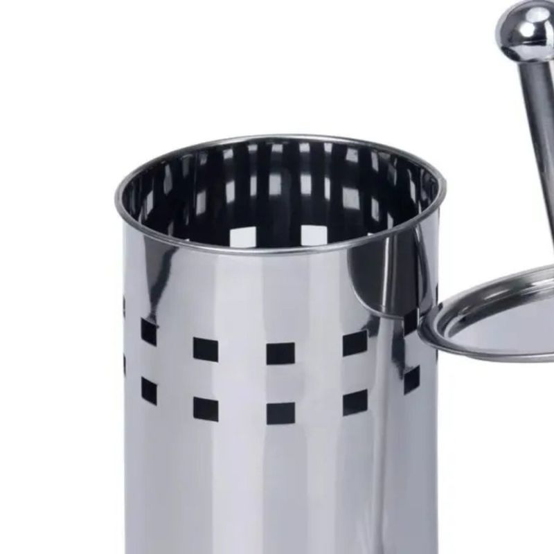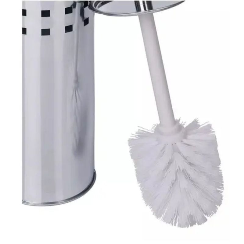 É um item indispensável, não só para a limpeza do banheiro, como também para quem deseja inovar na decoração desse cômodo, dando um toque a mais de beleza e sofisticação. Confeccionado em aço Inox de qualidade e altamente durável, essa escova possui um design arrojado, vindo como um acabamento diferenciado, com base também em inox e cerdas flexíveis para facilitar a limpeza do sanitário e garantir uma melhor higienização do espaço.Características do Produto:- 1 Escova Sanitária com Cerdas- 1 Dispender em inox para EscovaEspecificações:Dimensões do Produto: Cabo e Escova: Altura: 37,5cm Largura: 8 cm / Recipiente: Altura: 25cm Largura : 10cmMaterial: Aço Inox, plástico e Cedras de PoliésterCor: InoxPeso: 305gContém:01 Escova Sanitária Com Suporte - Inox