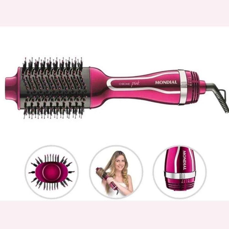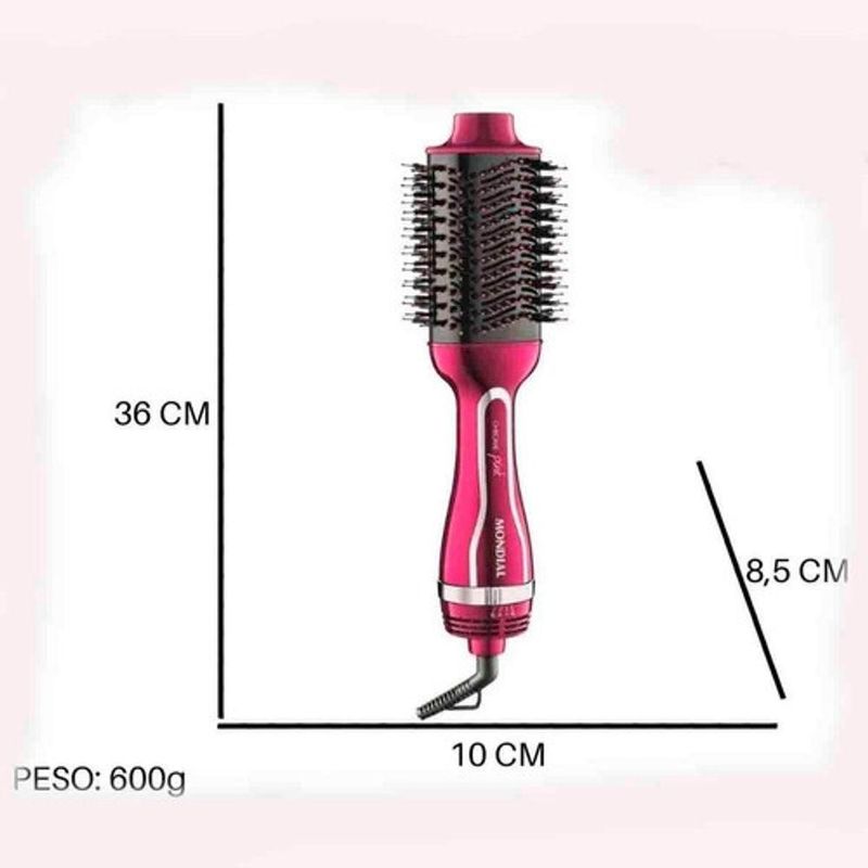 Escova Secadora Alisadora Mondial Com Garantia 220V Es-04 Pink----------------------------------------------- Mobilar Eletro ------------------------------------------------Há 25 anos no mercado de eletrodomésticos, vendendo produtos que te auxiliam nas atividades do dia a dia, trazendo sofisticação e conforto para a sua casa, e qualidade de vida para você e sua família!Produto vitrine , já foi exposto na loja, e as caixas algumas vezes sofrem avarias. O produto é novo , 100% original , adquirido direto de fábrica, testado previamente antes de embalar para evitar transtornos. Possui garantia de 90 dias pelo vendedor ,com nota fiscal. Com a Escova Secadora 1200W Golden Rose da Mondial, nunca foi tão fácil deixar o seu cabelo pronto para qualquer ocasião. Você pode sair de casa como sairia de um salão de beleza, pois graças ao seu design oval ela alisa, modela e dá volume ao cabelo, facilitando a produção de diversos penteados, tudo isso unindo o poder do secador aliado à praticidade da escova em um único produto.Ficha técnicaEspecificações gerais- Marca: Mondial- Modelo: ES-05- Potência: 1200W- Temperatura máxima: 140°C- Consumo: 1,2Kw/h- Escova Rotativa: Não- Voltagem: Disponível apenas na voltagem 220V- Controle de temperatura: sim- P/ cabelos úmidos: sim- Emite íons: sim- Função secador: sim- Fio giratório: sim- Cor :Preto/Rosa