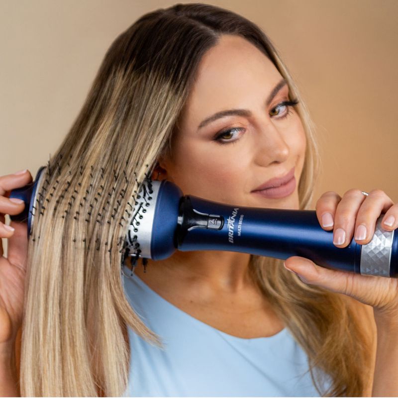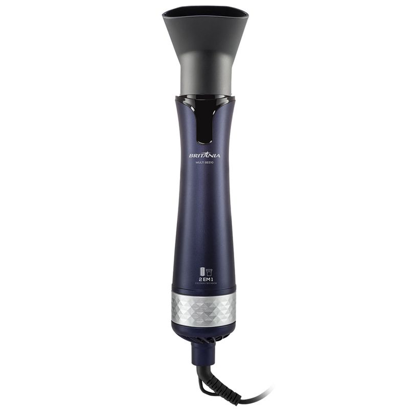 Seque, alise, modele e dê volume com grande facilidade os seus cabelos com a Escova Secadora Britânia Nano Ceramic 4 em 1 1000W BES10. Ela conta com alta performance de secagem e formato ideais para modelar e alisar os seus fios, da forma que você deseja! Tudo isso, sem atrito e ressecamento dos fios, pois o revestimento é de nano cerâmica que protege os fios do calor e proporciona mais brilho. Seus 1000W de potência proporcionam alto poder de secagem e modelagem. Sem falar na Tecnologia Tourmaline íon da Escova Secadora que seca os fios sem tirar a umidade natural dos cabelos deixando muito mais saudáveis e livres de frizz. E para sua maior mobilidade e liberdade no uso o cordão elétrico é giratório, 360°. Escova Secadora Britânia Nano Ceramic 4 em 1 é a aliada perfeita para mais praticidade no seu dia a dia! • 4 em 1: seca, modela, alisa e dá volume • 3 temperaturas e 2 velocidades • Jato de ar frio • Cordão elétrico com 1,80M • Cordão elétrico giratório • Bocal concentrador de ar • Bocal escova secadora • Metal e Plástico.