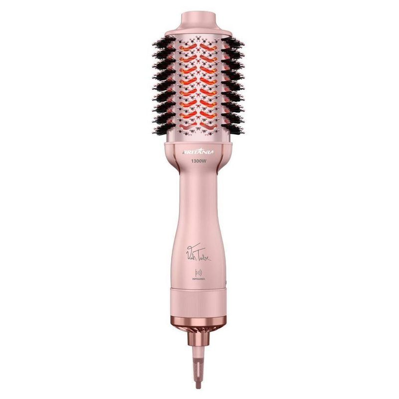 Escova Secadora Britânia Linha Viih Tube 4 Em 1 BES36 BivoltA Nova Linha de Cuidados Pessoais Viih Tube foi criada para acompanhar você em todos os momentos. Liberte a beleza que existe em você com a Escova Secadora Britânia Linha Viih Tube Bivolt 4 em 1 BES36.A tecnologia Infrared protege seus fios do calor excessivo, selando as cutículas e garantindo um cabelo brilhante, macio e livre de frizz. O revestimento em nanocerâmica cuida da saúde capilar, permitindo o uso em cabelos secos, úmidos ou molhados, sem danificar.Com a Escova Secadora 4 em 1 você pode secar, alisar, modelar e dar volume, afinal, ela se adapta a qualquer estilo e tipo de cabelo. As multicerdas facilitam o processo, oferecendo um acabamento impecável com menos esforço. Além disso, a função bivolt e as opções de 3 temperaturas e 2 velocidades tornam seu dia a dia mais prático, seja em casa ou durante viagens.Com a Escova Secadora Britânia Linha Viih Tube Bivolt 1300W, você tem o controle total sobre o seu visual. Sinta-se linda e confiante, expressando sua personalidade através do seu cabelo. Adquira agora a sua Escova Secadora e descubra o poder de ter o cabelo que você sempre quis!Principais Características:- 3 temperaturas disponíveis- Potência: 1300W- Material de revestimento: Nanocerâmica- Multicerdas- Anel para pendurar- Grade traseira removível- Tamanho do cordão: 1,80m- 2 velocidades disponíveis - Jato de ar frio.Especificações Técnicas:Marca: BritâniaModelo: BES36Cor: RosaTipo: Escova SecadoraPotência (W): 1300WEstado: NovoAltura do produto: 7,6 cmLargura do produto: 40 cmComprimento do produto: 9,8 cmPeso do produto: 0,52 kgAltura com embalagem: 9 cmLargura com embalagem: 41 cmComprimento com embalagem: 11 cmPeso com embalagem: 0,65 kgGarantia (Dias): 360Observação: Somente faturamos para o nosso consumidor final, ou seja, não faturamos pedidos para CNPJ por este portal de vendas;