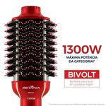 A Escova Secadora Britânia Soft 4 em 1 BES12 1300W combina potência, praticidade e tecnologia para transformar o cuidado com os cabelos. Com 4 funções em um só aparelho, ela alisa, modela, seca e dá volume, facilitando o dia a dia e garantindo resultados profissionais em casa.Suas cerdas ultramacias com Tecnologia Natural Care e o revestimento em cerâmica reduzem o atrito, selam as cutículas capilares e diminuem o frizz, deixando os fios mais brilhantes, macios e saudáveis. O calor é distribuído de forma uniforme, protegendo os cabelos do ressecamento.A escova conta ainda com 3 temperaturas, 2 velocidades e tecnologia de Luz Infrared, que seca os fios de dentro para fora, preservando a umidade natural e oferecendo cuidado eficiente para todos os tipos de cabelo. Além disso, os íons liberados pela tecnologia Tourmaline neutralizam a eletricidade estática, garantindo fios mais disciplinados e com menos frizz.Compacta, leve e com formato ergonômico, a escova possui cordão giratório de 1,8 m e é bivolt, perfeita para levar para qualquer lugar. Com a Tecnologia Multicerdas, o modelamento é mais rápido, reduzindo a necessidade de várias passadas e proporcionando praticidade e conforto no cuidado diário.• Luz infravermelha;• Bivolt manual;• 1300W de potência;• 3 temperaturas disponíveis;• 2 velocidades;• Cordão giratório;• Cordão elétrico com 1,80M;• Libera tourmaline íons;• Tubo com revestimento em cerâmica;• Tecnologia Multicerdas.
