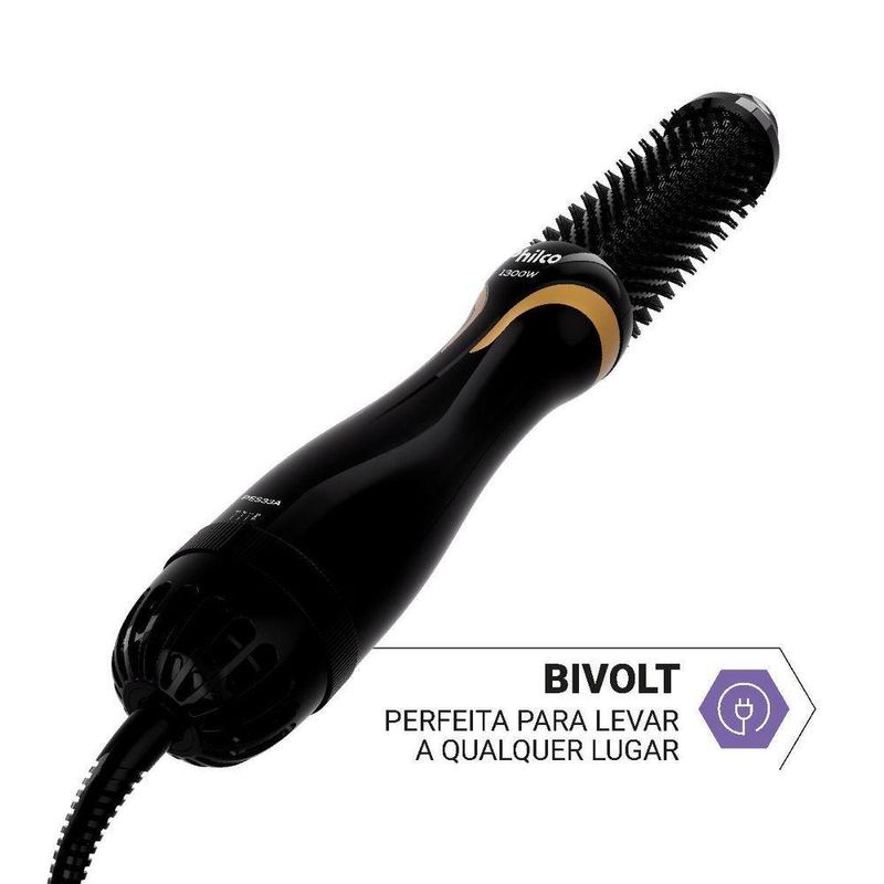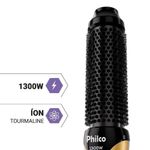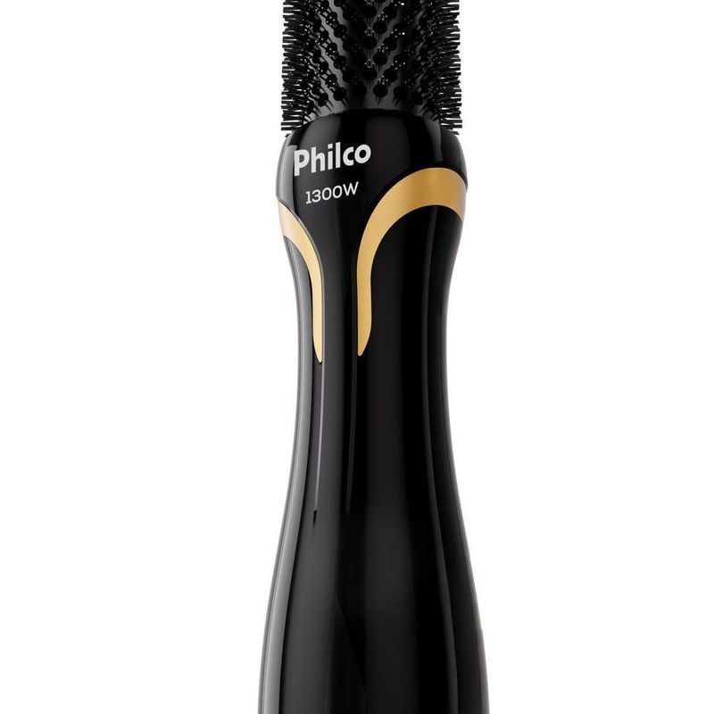 Escova Secadora Philco íons Tourmaline 1300W PES33A BivoltA Escova Secadora Philco PES33A une potência e tecnologia para facilitar sua rotina de beleza. Com 1300W e 3 velocidades, ela garante uma secagem rápida, eficiente e com acabamento profissional.Possui 3 níveis de temperatura, incluindo jato de ar frio, ideais para modelar e proteger diferentes tipos de cabelo. A escova oval de 38mm proporciona volume e definição desde a raiz até as pontas.A tecnologia Íon Tourmaline libera íons negativos que mantêm a hidratação natural dos fios, reduzindo o frizz e deixando o cabelo mais sedoso e brilhante. Seu revestimento cerâmico distribui o calor de forma uniforme, protegendo os fios.Além disso, o cordão giratório de 360° e o anel para pendurar oferecem liberdade e praticidade no manuseio. Compacta, leve e bivolt, é perfeita para uso em casa ou em viagens.- Potência de 1300W para secagem rápida e eficiente- Bivolt: ideal para levar em viagens- 3 velocidades e 3 temperaturas + jato de ar frio- Revestimento cerâmico com tecnologia Íon Tourmaline- Cerdas de nylon com escova oval de 38mm- Cordão giratório 360° e alça para pendurar- Temperatura de até 124°C com controle preciso.Marca: PhilcoTipo: Escova SecadoraPotência (W): 1300WGarantia (Dias): 360Modelo: PES33AEstado: NovoCor: Preto DouradoObservação: Somente faturamos para o nosso consumidor final, ou seja, não faturamos pedidos para CNPJ por este portal de vendas;