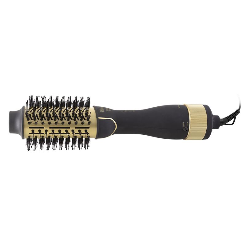 A Escova Secadora Philco PES50 4 em 1 Soft Gold Infrared 1300W garante a praticidade e a eficiência do secador e da escova em um só aparelho. Ela é 4 em 1, seca, alisa, modela e dá volume, possui cerdas Naturais e cerdas de nylon que não agridem os fios e proporcionam mais brilho e maior conforto na hora de pentear. Já seu revestimento em cerâmica garante a hidratação do cabelo, enquanto os íons tourmaline protegem os fios. É qualidade de salão no conforto da sua casa. A Escova Secadora Philco PES50 4 em 1 Soft Gold Infrared 1300W conta ainda com tecnologia Infrared, emissão de luz infravermelha que auxilia nos cuidados com os fios, mantem a hidratação natural, evita o ressecamento excessivo, o frizz e sela as cutículas capilares. Seu cabelo muito mais saudável e bonito! • 4 em 1: seca, modela, alisa e dá volume • Luz infravermelha • Bivolt manual • 1300W em 220V e 1200W em 127V • 3 temperaturas disponíveis • 2 velocidades • Cordão giratório • Cordão elétrico com 1,80M • Libera tourmaline íons • Tubo com revestimento em cerâmica |Oferta enquanto durarem os estoques.