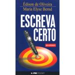 Escreva certo é um livro-chave para quem quer escrever corretamente em português. Foi escrito pelos professores Édison de Oliveira e Maria Elyse Bernd a partir das respostas e explicações do professor Édison às dúvidas dos ouvintes e telespectadores em sua participação junto à imprensa. Escreva certo explica, de forma clara e bem-humorada, muitas armadilhas da nossa língua, principalmente de palavras com grafia semelhante, mas com sentido diferente, ou de palavras com o mesmo som, porém com grafia diversa. Gênero: Dicionario Editora: L&PM Autor: Édison de Oliveira e Maria Elyse Bernd ISBN: 9788525412393 Ano: 2014 Número de páginas: 144 Acabamento: Brochura Formato (LxA): 10,5 x 18 cm