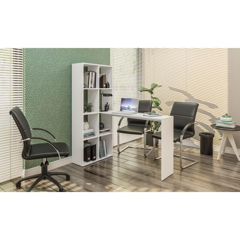 A Escrivaninha com Estante Lateral Multimóveis é um ótimo produto para ter no escritório ou em casa. Compacta e funcional possibilita acomodar seu ou , com a estante lateral você pode organizar pastas, livros ou objetos para decoração. Produzida em MDP com pintura UV, que garante maior durabilidade e resistência.Dimensões do produto montado:Altura estante: 149,5 cmLargura estante: 64,5 cmProfundidade estante: 25,5 cmAltura mesa: 75,5Largura da mesa: 135 cmProfundidade: 30Sistema de montagem:O produto será entregue desmontado e não disponibilizamos serviço de montagem.Imagem ilustrativa. Decoração não acompanha o produto.
