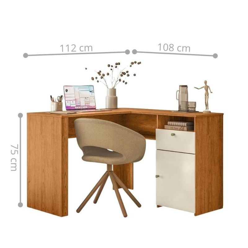 Escrivaninha De Canto Em L Com 1 Porta E 1 Gaveta Para Sala CanelaTransforme seu quarto em um verdadeiro refúgio de beleza e organização! Nossa escrivaninha multifuncional é a peça-chave que você precisa para criar um ambiente elegante e funcional. Com espelho, porta-joias e diversos compartimentos, ela oferece tudo o que você precisa para cuidar de si mesma e deixar seus pertences sempre à mão. Não perca essa oportunidade e garanta já a sua!Medidas da Penteadeira:Altura: 75,5 cmLargura: 112,5 cmProfundidade: 108 cmInformações da Penteadeira:Material: MDPGavetas: Sim (1)Pés: NãoItens Inclusos:1 EscrivaninhaManual de MontagemKit completo para montagem e manual de instruçõesGarantia:3 meses contra defeito de fabricaçãoInformações Adicionais:- Fotos meramente ilustrativas do produto no ambiente.- Os objetos que ambientam as fotos não acompanham o produto;- Verificar descrição e tamanho do produto antes da compra.- Avaliar a mercadoria no ato do recebimento e recuse em caso de divergência ou danos.- Mantenha as informações de contato e endereço de entrega atualizados para entrarmos em contato caso necessário.- Limpar com flanela ou pano macio seco, não utilizar produtos abrasivos, desengordurantes, álcool ou solvente. Não expor o produto diretamente à luz solar e à umidade.- Sugerimos a contratação de um montador profissional para a montagem do produto. Não nos responsabilizamos por danos causados no ato da montagem.- Não nos responsabilizamos pela montagem e desmontagem do produto no ato da entrega e devolução, assim como os custos gerados nestas situações.- A transportadora entregará o produto no andar térreo do endereço de entrega.- Não nos responsabilizamos por subir escadas, corredores e elevadores ou transporte por guincho em apartamentos. ALTURA DO PRODUTO (CM): 75 | LARGURA DO PRODUTO (CM): 112,5 | COMPRIMENTO DO PRODUTO (CM): 108 | MATERIAL PRINCIPAL: MDP | COR PREDOMINANTE: Preto | QUANTIDADE DE GAVETAS: 0 | FORMATO: L | ALTURA DO PRODUTO COM EMBALAGEM (CM): 8,6 | LARGURA PRODUTO COM EMBALAGEM (CM): 148,5 | COMPRIMENTO PRODUTO COM EMBALAGEM (CM): 37,1 | PESO PRODUTO COM EMBALAGEM (KG): 21,7 | PESO DO PRODUTO (KG): 21 | DESCRIÇÃO DO TAMANHO: 75x135,5x82,5 | CORES DO PRODUTO (FILTRO DE CORES): Preto | MATERIAL PARA FILTRO: Madeira | ESTADO DE ORIGEM: PR | CONTEÚDO DA EMBALAGEM: 1 Escrivaninha | INSTRUÇÕES/CUIDADOS: Limpar com flanela ou pano macio seco, não utilizar produtos abrasivos, desengordurantes, álcool ou solvente. Não expor o produto diretamente à luz solar e à umidade. | PRODUTO PRECISA DE MONTAGEM?: Sim, mas sugerimos a contratação de um montador profissional para a montagem do produto. Não nos responsabilizamos por danos causados no ato da montagem. | MARCA: Mobler | PRODUTO: Escrivaninha | CÔMODO INDICADO: Quarto | QUANTIDADES DE CAIXAS DE EMBALAGEM: 1 Cor: Canela