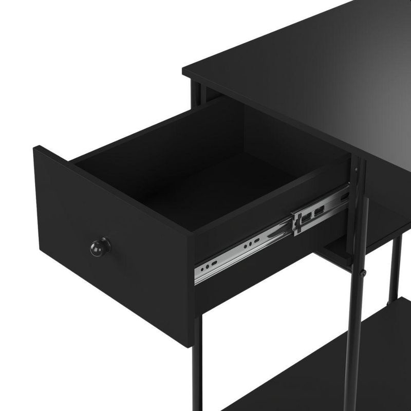 Escrivaninha Home Office Mesa De Estudo Escritório Quarto Gaveta Estilo Industrial Criare PretoFuncional e com design moderno, esta escrivaninha é perfeita para ambientes de home office, quartos ou escritórios. Sua estrutura em metal preto oferece estabilidade e durabilidade, enquanto os tampos em MDF com acabamento amadeirado trazem um toque de sofisticaçã conta com uma prática gaveta lateral, ideal para guardar itens pequenos, como papéis, canetas ou acessórios, além de uma prateleira inferior que otimiza o espaço para livros, pastas ou objetos decorativos.MEDIDAS DO PRODUTO MONTADO:Altura: 76 cm;Largura: 55 cm;Profundidade: 125 cm.Compacta e completa, essa escrivaninha alia pde com um visual elegante, valorizando o ambiente e oferecendo o suporte ideal para a sua rotina.*NÃO NOS RESPONSABILIZAMOS PELA MONTAGEM DO MÓVEL**GARANTIA DE ATÉ 3 MESES*