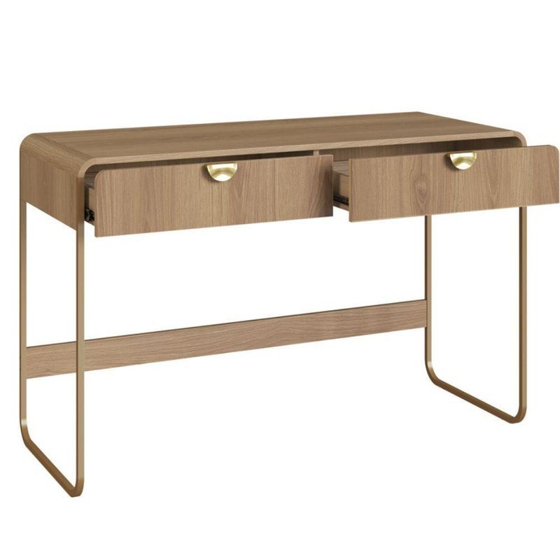 Escrivaninha Luna - HanoverA Escrivaninha Luna na cor Hanover é uma peça de mobiliário funcional e elegante, perfeita para criar um espaço de trabalho ou estudo moderno e inspirador. Sua estrutura em MDP 15mm, com cantos arredondados feitos de cantoneiras em MDF, garante durabilidade e um design suave. O acabamento em pintura BP proporciona uma superfície resistente a riscos, fácil de limpar e de alta qualidade.Pensada para a organização, esta escrivaninha conta com duas gavetas com corrediças telescópicas, que garantem uma abertura total e suave. Isso facilita o acesso e a organização de materiais de escritório, documentos e outros itens essenciais, mantendo a área de trabalho sempre arrumada. Os puxadores em poliestireno em um tom dourado adicionam um toque de sofisticação, criando um contraste elegante com a madeira.A base da escrivaninha é sustentada por pés em metal, que conferem um visual leve e contemporâneo à peça. As sapatas plásticas na base dos pés garantem a estabilidade do móvel e protegem o piso contra arranhões, unindo beleza e funcionalidade.A Escrivaninha Luna - Hanover é a escolha ideal para quem busca uma peça que combine design atemporal, praticidade e uma estrutura robusta para o dia a dia.Garanta sua Escrivaninha agora mesmo em nosso site!Especificações:Altura: 80cmLargura: 125cmProfundidade: 50cmNecessita montagem: simGarantia: 90 dias contra defeitos de fabricação.Limpeza e Manutenção:Limpar com pano macio umedecido em solução de água e sabão neutro e secar em seguida;Não utilizar produtos químicos. Não expor seu produto ao sol e umidadeNão exceder o limite de peso.