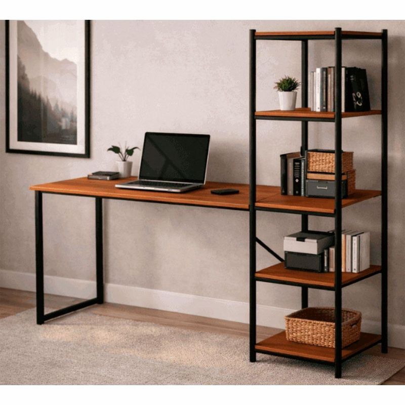 Escrivaninha Mesa Para Estudo E Home Office Tower Klm Store Preto/canelaEscrivaninha Mesa para Estudo e Home Office Tower KLM STOREUma escrivaninha estilo industrial combina design robusto com funcionalidade pratica, ideal para ambientes de home office, estudo ou escritorio moderno. O visual industrial e marcado pela uniao de estruturas metalicas pretas (aco ou ferro) com tampos em MDF, criando um contraste elegante entre o bruto e o sofisticado.O estilo industrial apresenta linhas retas e clean, com estrutura metalica pintada a po que confere durabilidade e um visual contemporaneo que se integra a diferentes decoracoes.O tampo principal e espacoso para acomodar um notebook, monitor, livros, cadernos e acessorios, proporcionando conforto durante longos periodos de estudo ou trabalho.Prateleiras integradas: Prateleiras (laterais ) permitem organizar livros, pastas, decoracoes ou equipamentos, mantendo o espaco organizado e funcional.Perfeita tanto para quem estuda quanto para quem trabalha em casa, a mesa industrial acomoda bem equipamentos eletronicos e materiais de escritorio, podendo ser usada em quartos, salas, escritorios ou coworkings.Medidas do Produto Montado:Altura: 146 CmLargura: 120 CmProfundidade : 45 CmPeso Suportado Ate: 20 KgATENCAO: Os acompanhamentos de decoracao e itens de eletronicos sao meramente ilustrativos e nao acompanham o produto.Observacoes:ANTES DE MONTAR O SEU PRODUTO: certifique -se que todas as instrucoes dispostas no manual, bem como, todas as ferragens descritas estejam presentes dentro da embalagem.Verifique se ha alguma peca avariada ,caso esteja, prestaremos a devida assistencia dentro do prazo de garantia.Embora o produto acompanhe o manual de montagem, verifique a complexidade antes de decidir monta-lo sozinho.Recomendamos que contrate um profissional de sua confianca.E necessario que se tenha uma parafusadeira para obter melhor montagem.