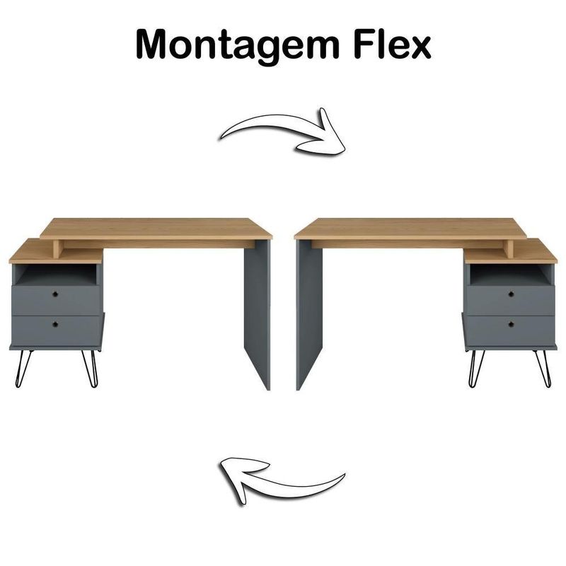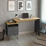 Escrivaninha Plus 2 Gavetas Olmo/grafito Artany Olmo/grafitoPara se ter um bom conforto em casa ou no trabalho, é ideal que os móveis sejam do tamanho apropriado para aquele ambiente, não é? Por isso, a Escrivaninha Plus possui 3 opções de tamanho, que você escolhe durante a montagem: pode ter a largura de 1,135m; 1,285m ou 1,435m!Sua autêntica combinação de cores remete ao estilo industrial e traz muita modernidade ao ambiente. Os delicados pezinhos de metal, chamados hairpin legs, são um ícone retrô, e relacionam-se à beleza industrial, além de serem super estáveis, e ainda terem um feltro adesivo para proteger seu piso! Você vai estudar ou trabalhar com maior bem-estar, pois o tampo tem seu acabamento da borda em PVC de 2mm, o que torna os cantos mais suaves e proporciona um uso mais agradável, evitando atritos desconfortáveis.Transforme seu espaço com esta escrivaninha de design único, que além de ser linda e de excelente qualidade, tem muito espaço nas gavetas, sendo super funcional!DESCRIÇÃO TECNICA:Altura: 75,1cmLargura: 143,5cmProfundidade:45cmPeso: 25Material: MDPQuantidade de volumes: 1RECOMENDAÇÃO:- Para maior durabilidade, recomenda-se que a limpeza seja feita com pano limpo e levemente umedecido em água e sabão neutro. Em seguida, deverá ser passado um pano limpo e seco.MONTAGEM E :- Não oferecemos montagem. Os nossos móveis são entregues desmontados e todos acompanham manual com instruções de montagem.- Sempre verifique o nível de complexidade de montagem e em caso de dúvida não monte sozinho (a), contrate um - Nos responsabilizamos pela dos produtos adquiridos até a porta de entrada ou portaria do indicado, se a portaria do condomínio permitir, as são efetuadas no piso térreo e é de responsabilidade do cliente a locomoção da mercadoria até seu apartamento ou casa. As transportadoras não estão autorizadas a subir escadas, elevadores ou realizar o içamento de produto.IMAGENS:- As imagens ambientadas são meramente ilustrativas e podem apresentar itens que não compõe o produto.- Objetos decorativos da imagem não acompanham o produto.- As cores do produto podem sofrer variação de acordo com o seu monitor a iluminação do seu ambiente ou sua percepção visual.Requer montagem: Sim | Inclui manual de montagem: Sim | Quantidade de caixas da embalagem: 1 | Materiais da escrivaninha: MDP | Altura: 75,1 cm | Largura: 143,5 cm | Profundidade: 45 cm | Cor: Olmo/Branco | Cor: Olmo/Grafito