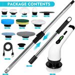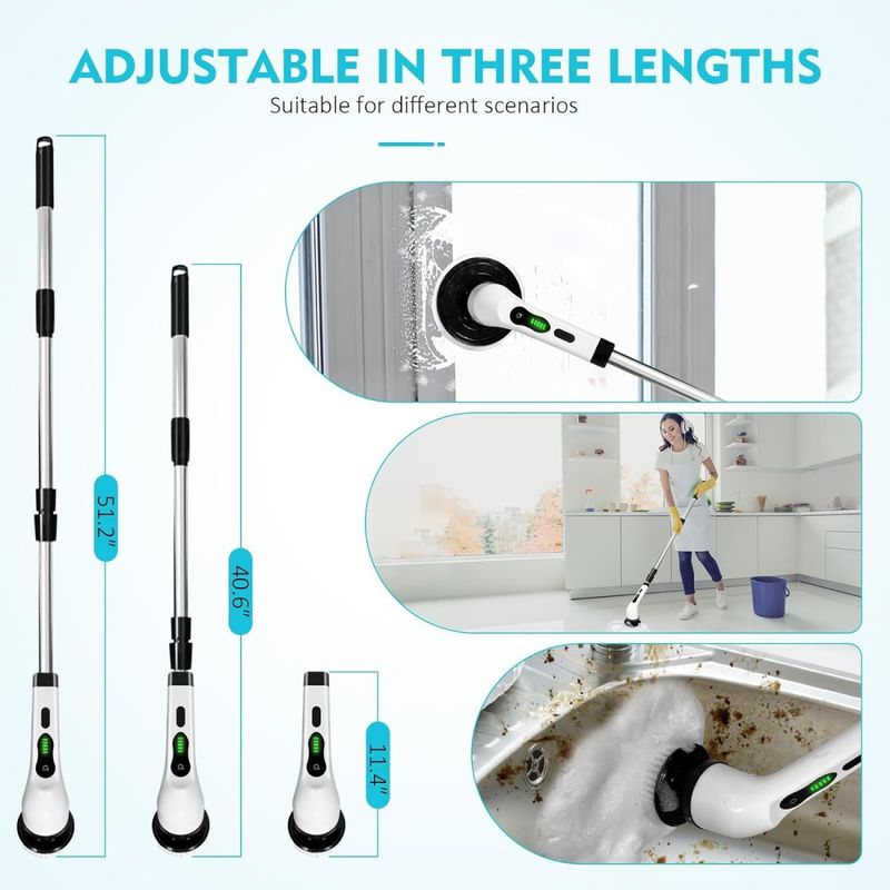 Escova de limpeza elétrica 9 em 1: contém 4 tipos de cabeças de limpeza e 5 tipos de almofadas de limpeza para lidar efetivamente com várias necessidades de limpeza e limpar mais rapidamente banheiros, banheiras, chuveiros, pias, vidros, azulejos, armários, fogões, carros, etc. Melhores resultados de limpeza: equipado com um motor de 25 watts, proporcionando poder de limpeza mais potente. Ele também tem uma função de velocidade ajustável (300r/min, 400r/min) para ajudá-lo a limpar melhor em diferentes materiais em diferentes cenários. Vida útil da bateria de longa duração: equipada com uma bateria recarregável de 2000 mAh, que pode ser totalmente carregada em 3 horas e pode ser usada continuamente por 90 minutos após ser totalmente carregada. Equipado com um cabo de carregamento (cabeça de carregamento não incluída). Haste de extensão removível e ajustável: A haste de extensão removível e telescópica pode ser estendida até 101 cm, facilitando a limpeza em alturas anteriormente difíceis de limpar. Economia de tempo e limpeza eficiente: a escova de limpeza elétrica é especialmente projetada para diferentes cenas de limpeza doméstica. Ele considera totalmente as diferentes alturas necessárias para a limpeza e está equipado com uma haste de extensão. A escova de limpeza elétrica substitui o método de limpeza tradicional demorado e trabalhoso e pode ser concluída no menor tempo de uma maneira mais fácil e eficiente. Não é necessário suportar o trabalho duro e a fadiga que vem com a limpeza tradicional. Especificações: Material: ABS Tempo de carregamento: 3 horas Capacidade da bateria: 2000 mAh Teclados dinâmicos: 2 engrenagens Saída nominal: 25W Frequência nominal: 50Hz Conteúdo da embalagem: 1 esfregão giratório elétrico. 1 braço de extensão. 9 cabeças de escova.