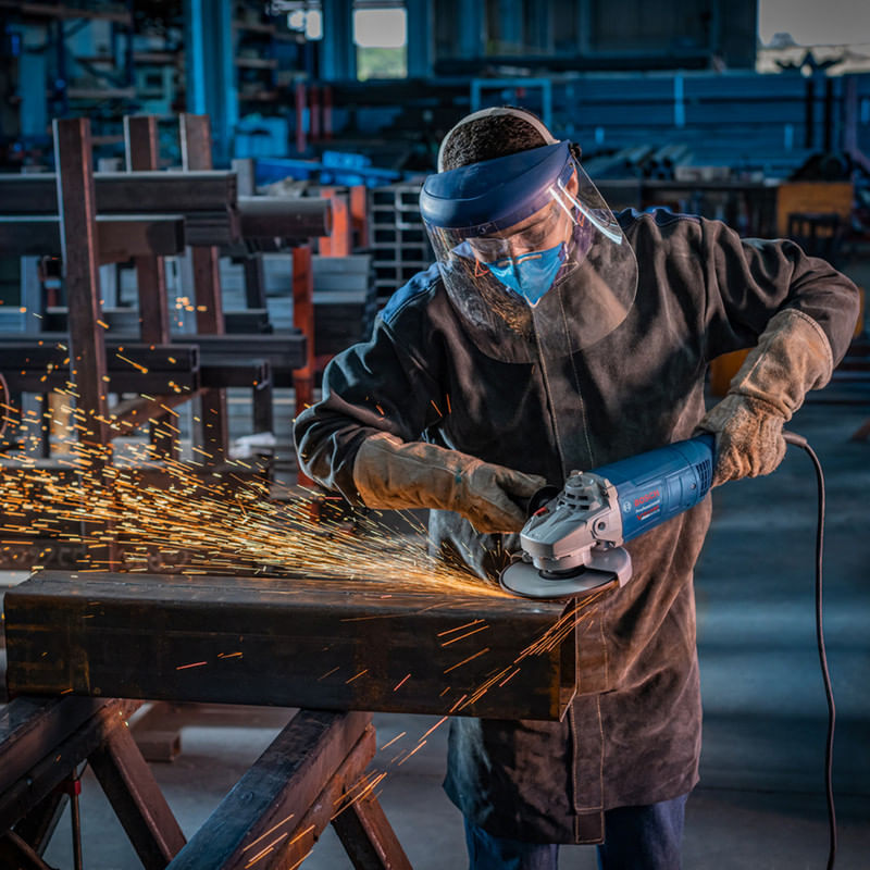 ESMERILHADEIRA ANGULAR BOSCH MODELO GWS 2200-180 PROFESSIONAL COM 2200W DE POTÊNCIA + 3 DISCOS, ÓCULOS E LUVAS A esmerilhadeira GWS 2200V-180 possui 2.200 W de potência, sendo a mais leve no mercado e com a melhor proporção entre potência e peso. - Indicada para uso industrial, para realização de cortes e desbastes em materiais metálicos, como ferro e aço. - Potência: 2200 Watts. - Rendimento de desbaste/corte superior. - Vida útil prolongada sob ambientes de trabalho exigentes e sob condições de trabalho de carga pesada graças ao design e componentes robustos. - Mais segurança graças ao interruptor do tipo “Homem morto“. - Gatilho homem-morto, Fácil troca e maior durabilidade das escovas de carvão. Dados técnicos: Potência nominal absorvida: 2200 W; Nº de rotações em vazio: 8.500 r.p.m. Ø do disco: 180 mm; Cabeça de desbastar, diâmetro: 140 mm; Peso: 4,9 kg. Itens que acompanham a máquina: -01 Chave de aperto; -01 Porca de apoio; -01 Porca de aperto; -01 Capa protetora; -01 Punho auxiliar; -03 Discos Vonder; -01 Par de luvas; -01 Óculos de segurança.