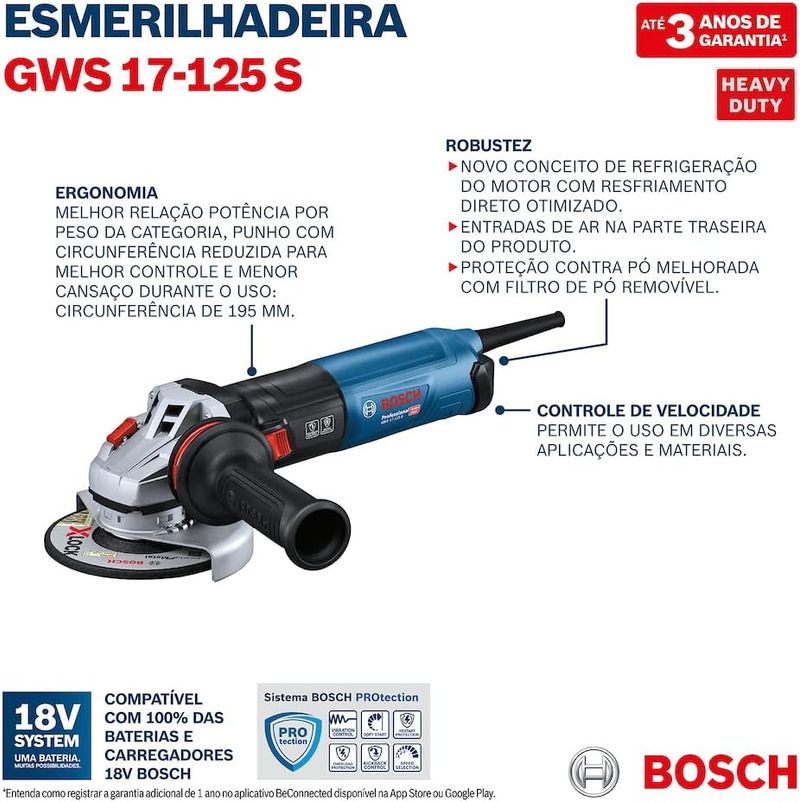 Providencia alta potência, capacidade de sobrecarga e proteção melhorada contra o pó mediante as entradas de ar do lado posterior da ferramenta com filtro de pó amovível e é sinônimo de máxima produtividade. Graças a seu tamanho do punho significativamente reduzido, a esmerilhadeira angular com motor de 1700 W potente permite uma maior comodidade durante o trabalho na indústria metalúrgica. Para uma proteção elevada do usuário, ela dispõe de KickBack Control, de proteção contra rearranque involuntário e de uma empunhadeira lateral para controlo da vibração.Características técnicas:- Potência nominal absorvida: 1700 W- Nº de rotações em vazio: 2.800 ¿ 11.500 RPM- Ø do disco: 125 mm- Rosca do eixo de esmerilhamento: M14- Empunhadeira principal: Barril- Ø do furo: 22,23 mm- Peso: 2,2 kg- Interruptor bloqueávelItens inclusos:- Caixa dobrável- Filtro de poeira- Empunhadeira auxiliar Vibration Control- Chave de pinos- Tampa de proteçãoVoltagem: 220vSKU: 11170606