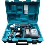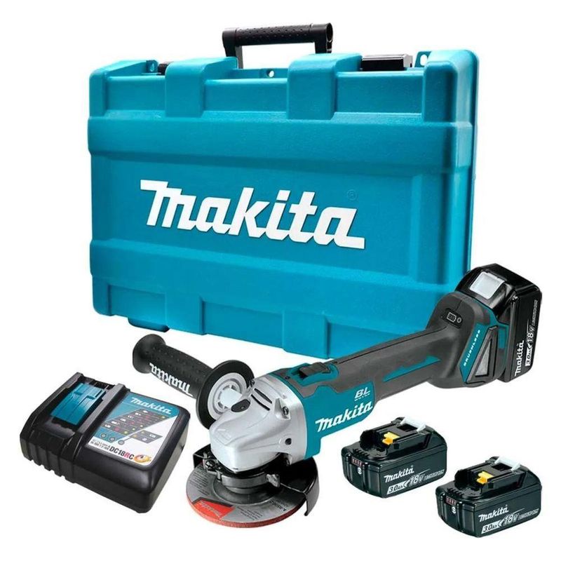 Esmerilhadeira Angular Dga504rfe Makita 5'' 125mm 18v Com 2 Baterias Carregador Disco E MaletaCódigo Fornecedor: DGA504RFEMarca: MakitaConteúdo da embalagem: esmerilhadeira, 2 baterias 18V 3,0 Ah, carregador rápido, punho lateral, disco de desbaste e maleta.DETALHES TÉCNICOS- Diâmetro do Disco: 125 mm (5)- Rotação por Minuto: 8.500 rpm- Voltagem da Bateria: 18V- Amperagem da Bateria: 3.0 Ah- Composição da Bateria: Íons de Lítio- Dimensões (C x L x A): 36,2 cm x 14 cm x 14,5 cm- Peso: 2,6 kg- Espessura Máxima do Disco: 6,4 mm (1/4 pol)- Rosca do Pino: M14 (5/8 pol)- Tensão Carregador: BivoltAPLICAÇÕES E DICAS DE USOA Esmerilhadeira Angular Makita 18V 5 com 2 Baterias e Carregador é ideal para cortes, desbastes, lixamentos e acabamentos em materiais como alumínio, inox, concreto, mármore e granito. Seu design compacto e leve permite o uso em locais apertados, reduzindo a fadiga em trabalhos prolongados.A esmerilhadeira com maleta Makita é indicada para profissionais de serralherias, oficinas, construção civil e outros segmentos que necessitam de eficiência e durabilidade em equipamentos.DESTAQUES E DIFERENCIAIS- Motor BL (Brushless): Maior desempenho, autonomia e durabilidade.- Tecnologia XPT (Extreme Protection Technology): Duas vedações especiais protegem o motor e as partes elétricas de poeira e líquido.- Tecnologia AFT: Prevenção de contragolpe para maior segurança.- Ajuste Automático de Torque: Tecnologia ADT que ajusta a potência conforme a carga.- Função Anti-reinício: Lâmpada de advertência que evita a partida do motor quando a bateria é inserida com o interruptor travado.- Indicador de Nível da Bateria: Controle aprimorado durante o uso.- Punho Ergonômico e Lateral de Duas Posições: Conforto e flexibilidade para manuseio.- Tela de Proteção Contra Contaminações: Maior durabilidade do motor.- Partida Suave: Operação mais controlada.- Gatilho Deslizante e Paddle: Versatilidade no uso.- Leve e Compacta: Ideal para trabalhos em diversos locais.Garantia: 12 meses Voltagem: Bivolt | Tensão Elétrica: Bivolt | Potência: 8500 | Alimentação: Bateria | Potência da Bateria: 18 | Produto: 0 | Inclui bateria: | Velocidade mínima de rotação: | Marca: | É mini esmerilhadeira: | Com proteção contra sobrecarga: | Cor: Azul | Acessórios incluídos: | Com arranque progressivo: | Tipo de interruptor: | Voltagem da bateria: | Tipo de esmerilhadeira: | É antipoeira: | Comprimento: | Linha: | Altura: | Com cabo lateral: | É sem fio: | Comprimento do cabo: | Modelo: | Inclui protector de disco: | Frequência: | MPN: | Modelo detalhado: | Diâmetro do disco: | Velocidade máxima de rotação: | Largura: | Com botão de bloqueio de disco: