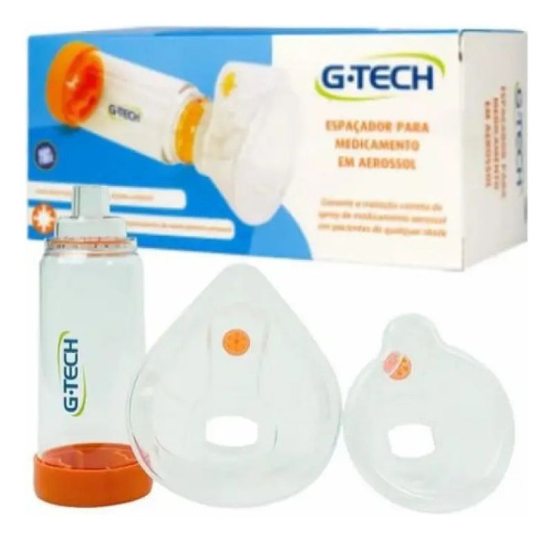Compatível com dispensadores de medicamento aerossol. Máscaras extramacias para maior conforto. Sistema de válvula dupla para melhor vedação. Auxilia na retenção máxima do medicamento. INFORMAÇÕES SOBRE O PRODUTO SPAÇADOR infantil/ADULTO CLEAR GTECH Os espaçadores G-Tech são compatível com todos os dispensadores de medicamento aerossol. Com máscaras extramacias e válvula dupla (no tubo e máscara), ajudam a vedar totalmente o ambiente externo, mantendo a retenção máxima do medicamento.