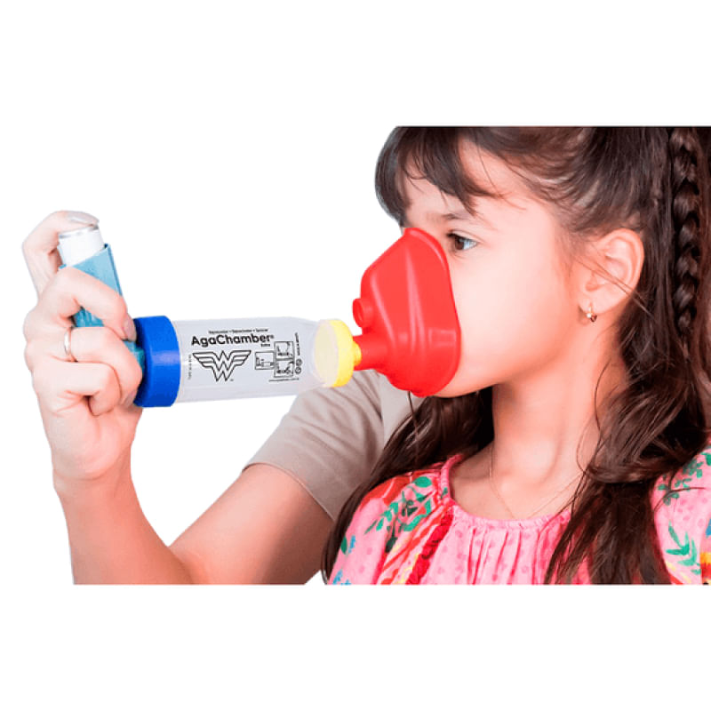 Espa?ador Infantil AgaChamber Mulher MaravilhaO Espaçador Infantil AgaChamber Mulher Maravilha é utilizado para medicamentos inaláveis em spray e aerosol. O tubo é transparente para garantir uma melhor visualização, com volume de 150mL e máscara Flexible Confort, extra macia, de uso infantil e adulto. É compatível com todos os tamanhos de dispensadores de medicamentos e é BPA Free, o que torna seu uso mais seguro. E ainda possui embalagem que se transforma em Cofrinho e contém adesivos especiais com a heroína mais que querida pela criançada a Mulher Maravilha.