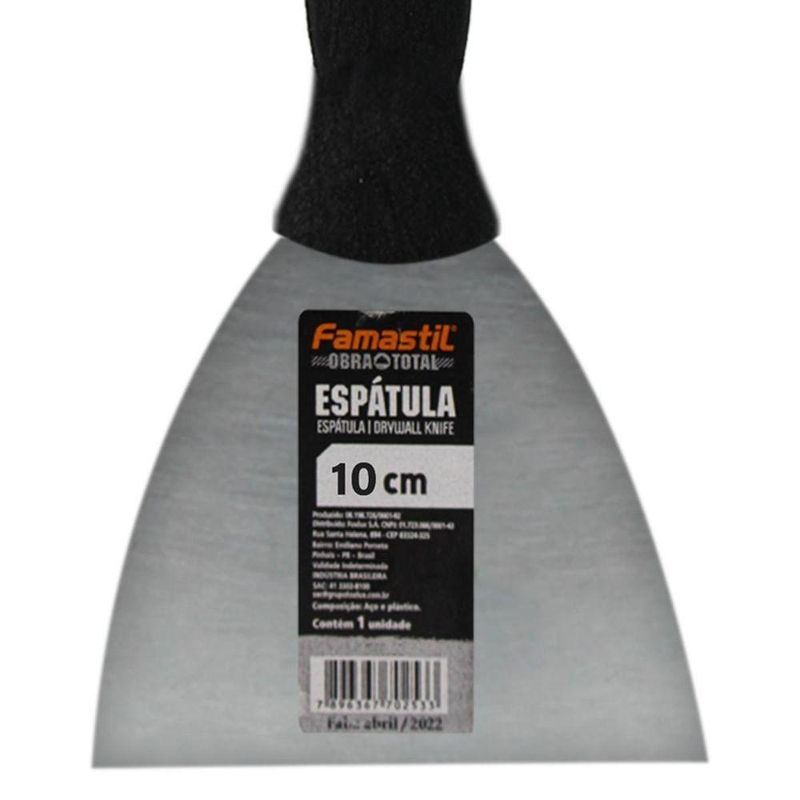 Espátula De Aço Encruado 1020 Famastil Cabo Em Pvc 10cmEspátula de Aço Encruado 1020 Famastil – Resistência e Precisão para Acabamentos PerfeitosA Espátula de Aço Encruado 1020 da Famastil é uma ferramenta essencial para trabalhos de pintura, reformas e acabamentos. Fabricada em aço de alta resistência, garante durabilidade e excelente desempenho em aplicações variadas. Seu cabo em PVC ergonômico proporciona conforto e firmeza durante o uso, tornando-a ideal tanto para profissionais quanto para entusiastas do DIY (faça você mesmo). Ficha Técnica: - Material da lâmina: Aço encruado 1020 - Material do cabo: PVC - Design do cabo: Anatômico e resistente - Uso: Pintura, reformas, raspagem e aplicação de massas Usabilidade: - Raspagem de resíduos em superfícies - Aplicação de massas, como massa corrida e gesso - Remoção de tintas e adesivos - Acabamentos em trabalhos de pintura e construção Sobre a Marca: A Famastil é uma marca consolidada no mercado de ferramentas, reconhecida pela qualidade e inovação de seus produtos. Com décadas de experiência, a empresa se dedica a oferecer soluções práticas e eficientes, atendendo às exigências de profissionais e amadores em diversas áreas. Com a Espátula Famastil, você garante um acabamento de qualidade e eficiência nos seus projetos!